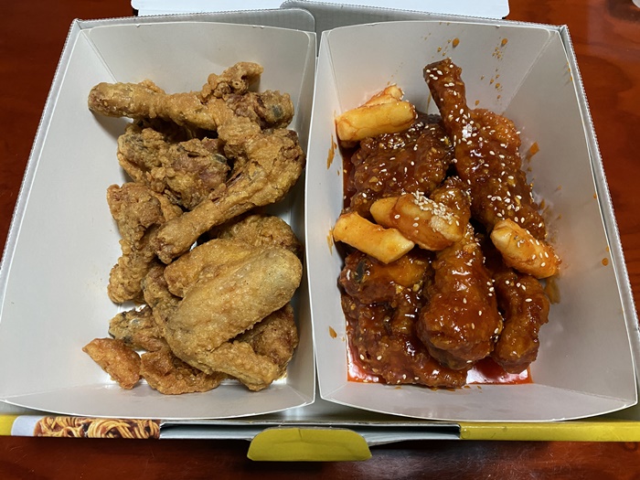 우리는 후라이드+양념 두마리 세트를 주문했고