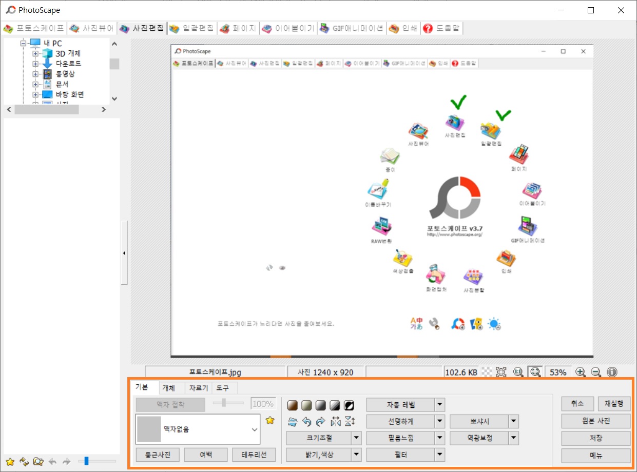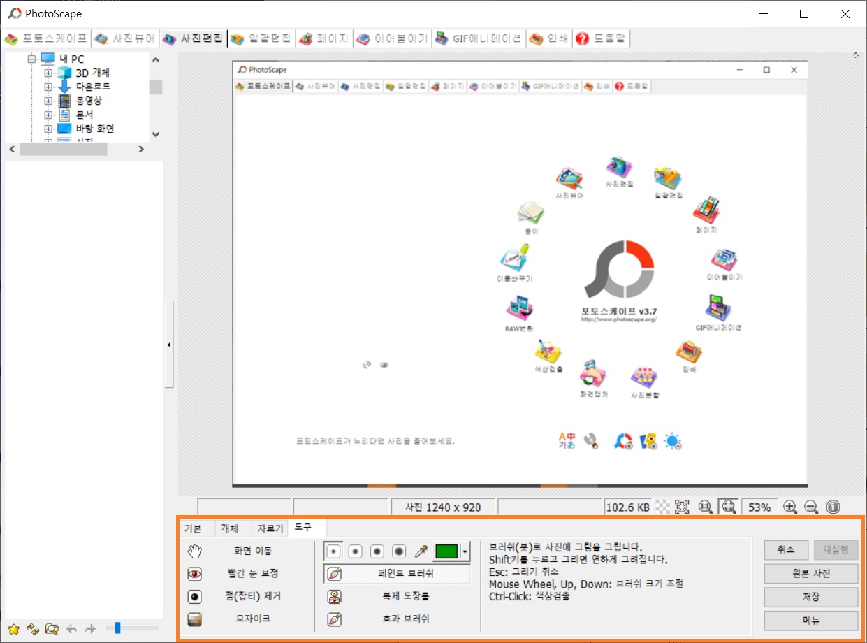 포토스케이프 프로그램은 이렇게 생겼고
