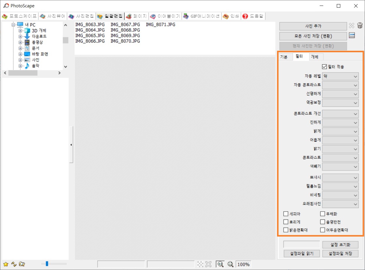 그 중에서 사진편집, 일괄편집 기능을 이용하면 됨.