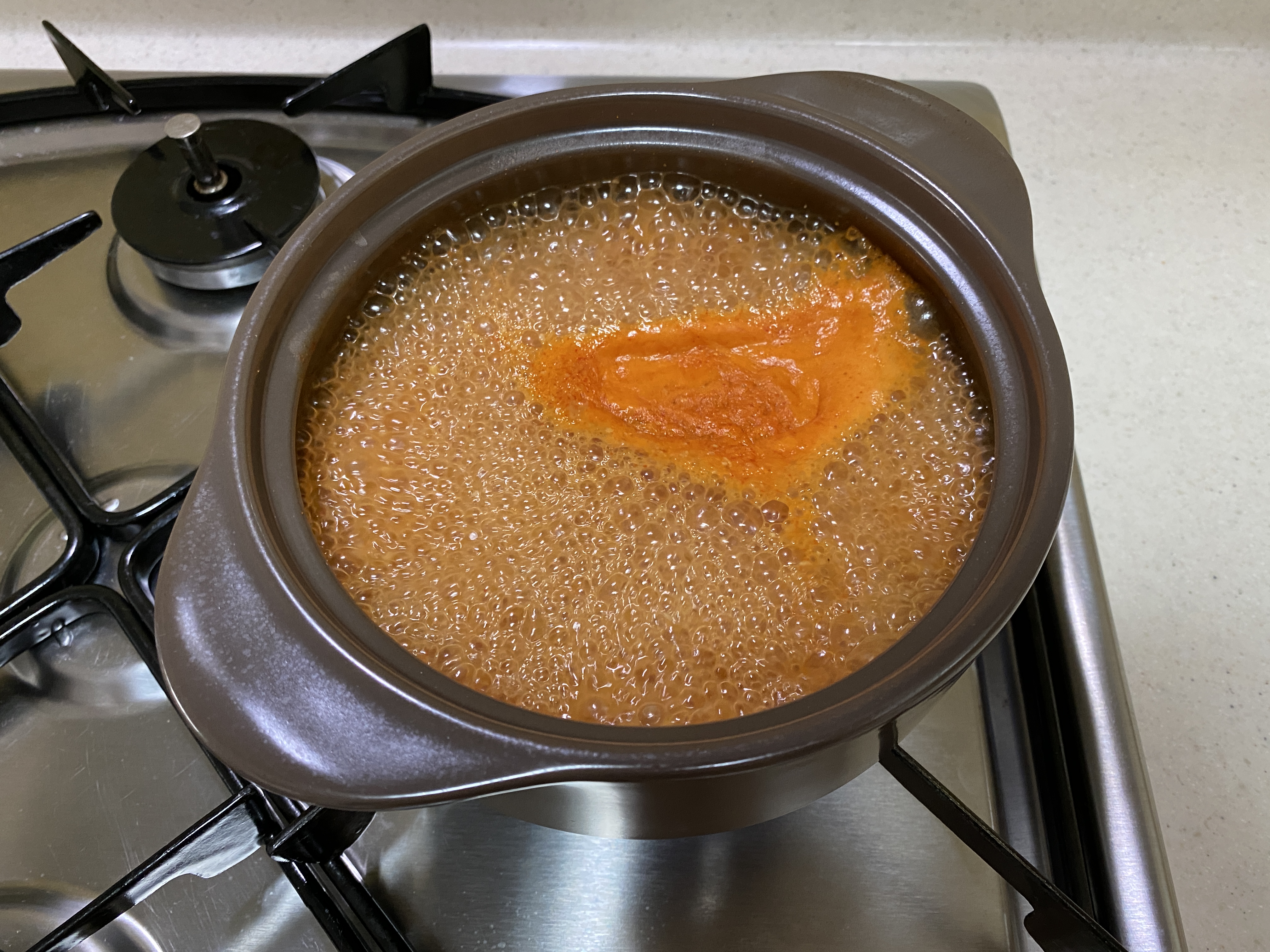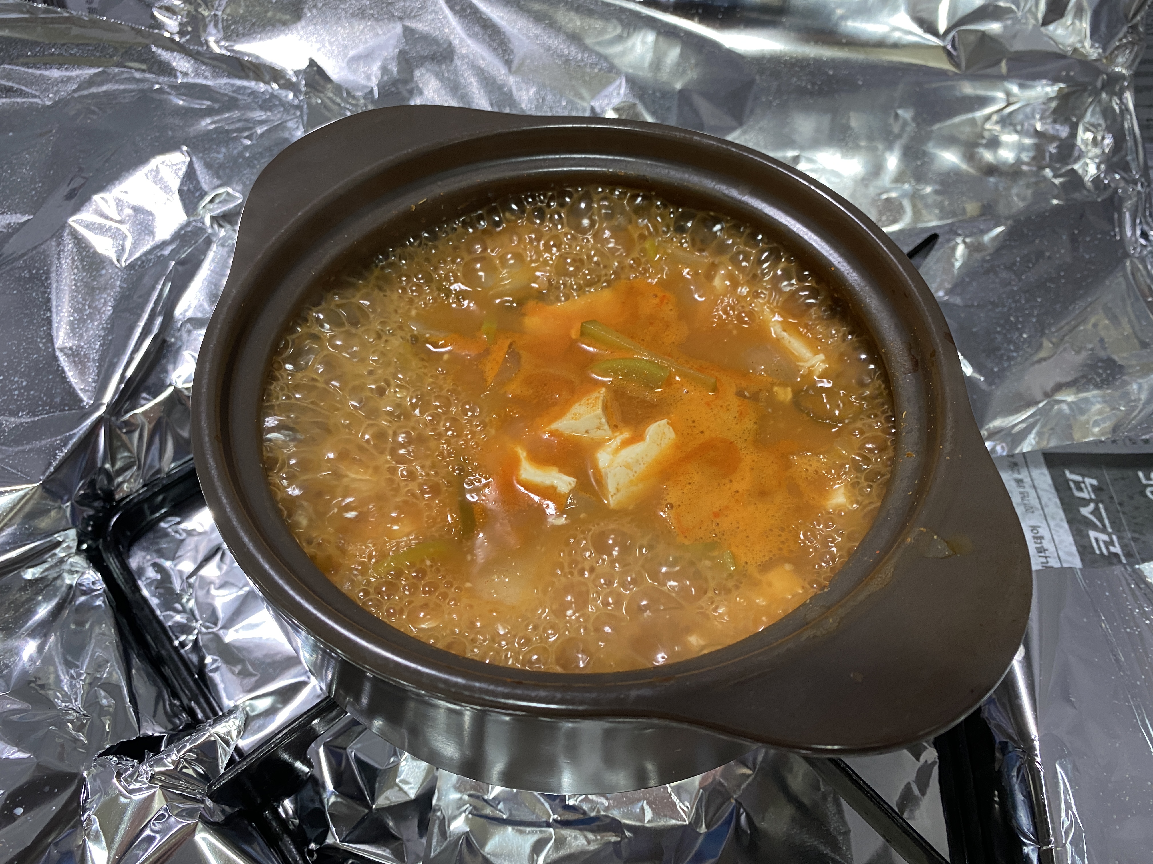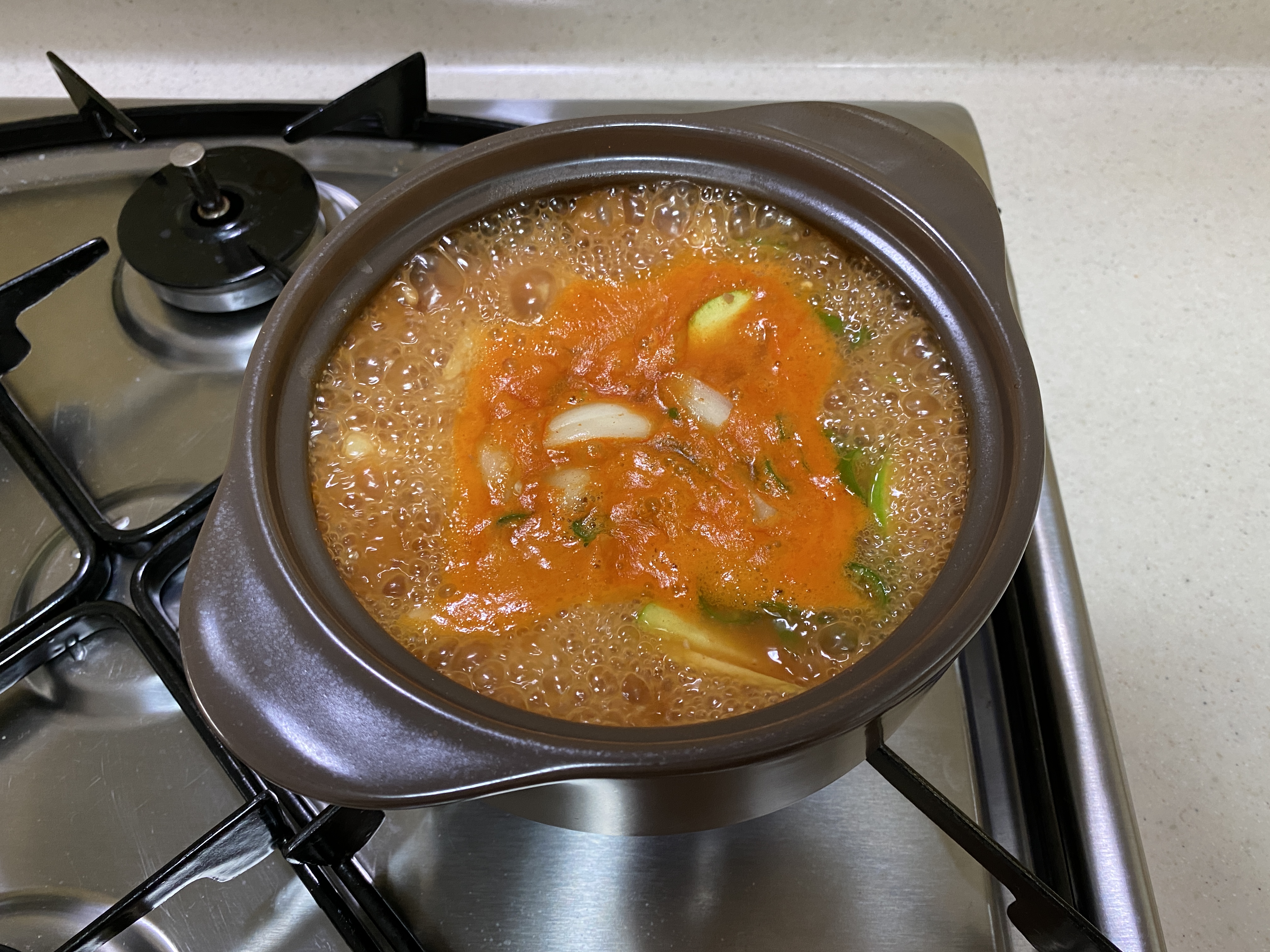 7. 식은 된장찌개를 다시 한번 끓여준다.
