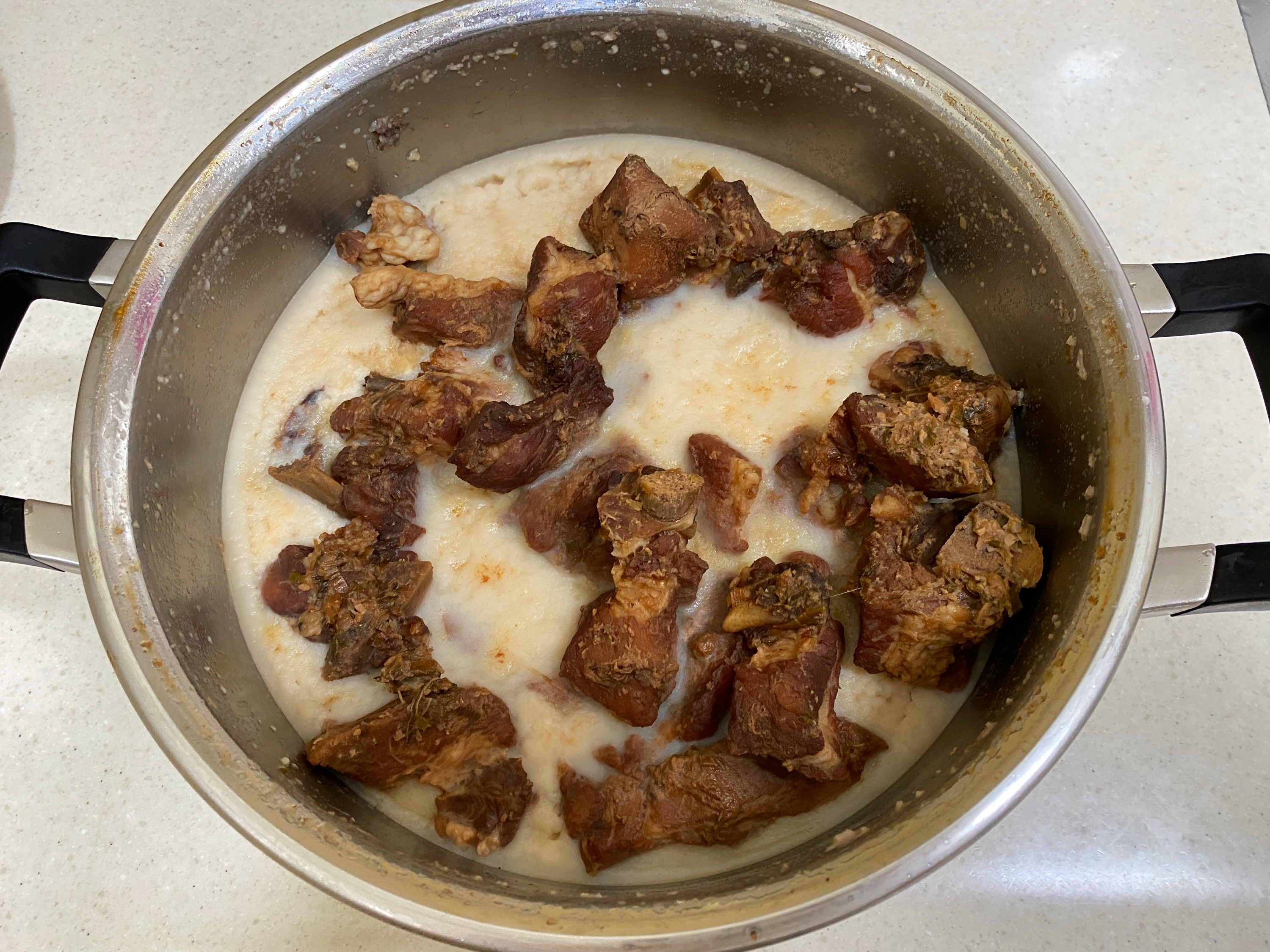 고기는 한시간을 넘게 끓였는데도 퍽퍽+질기다.