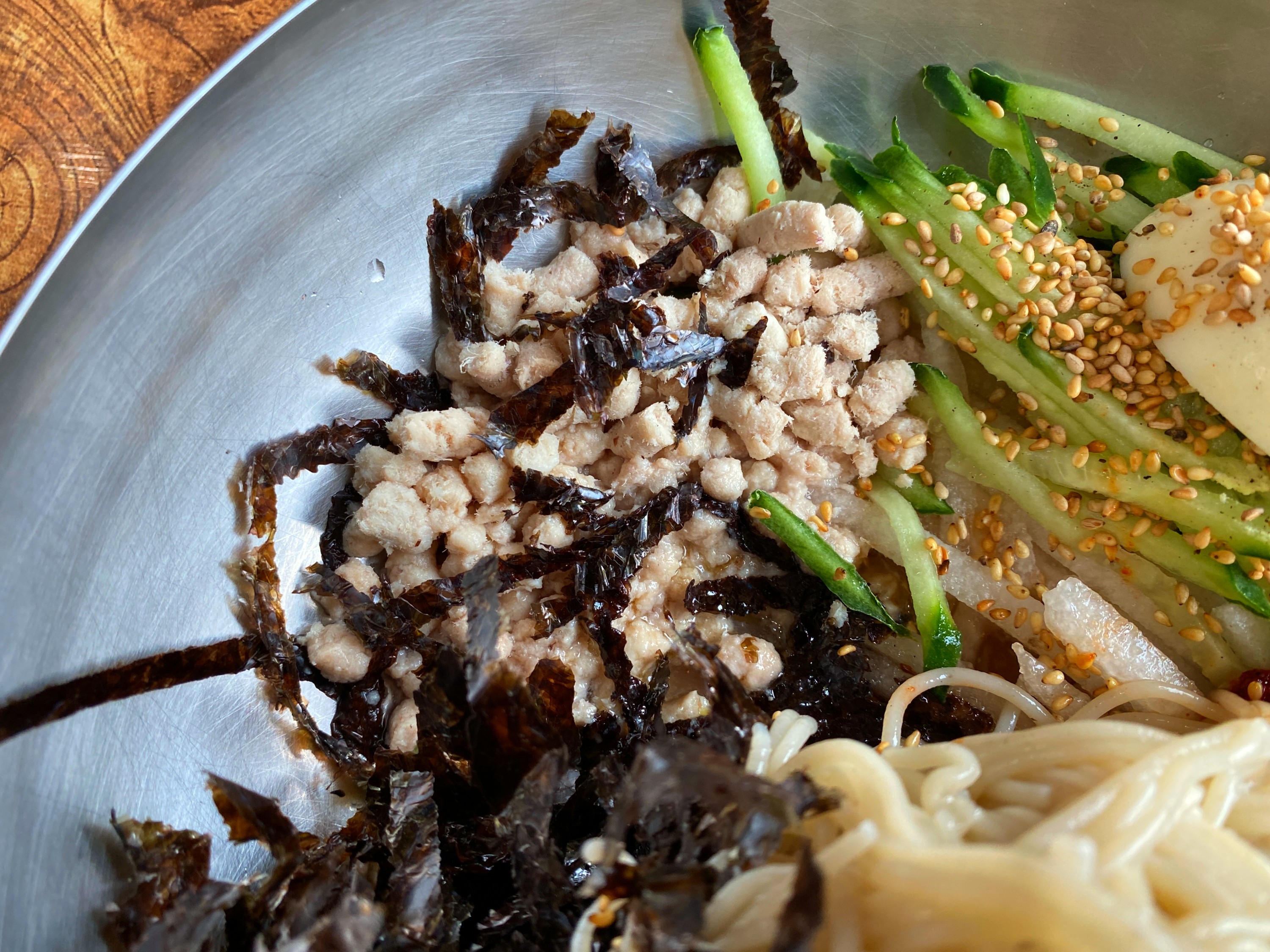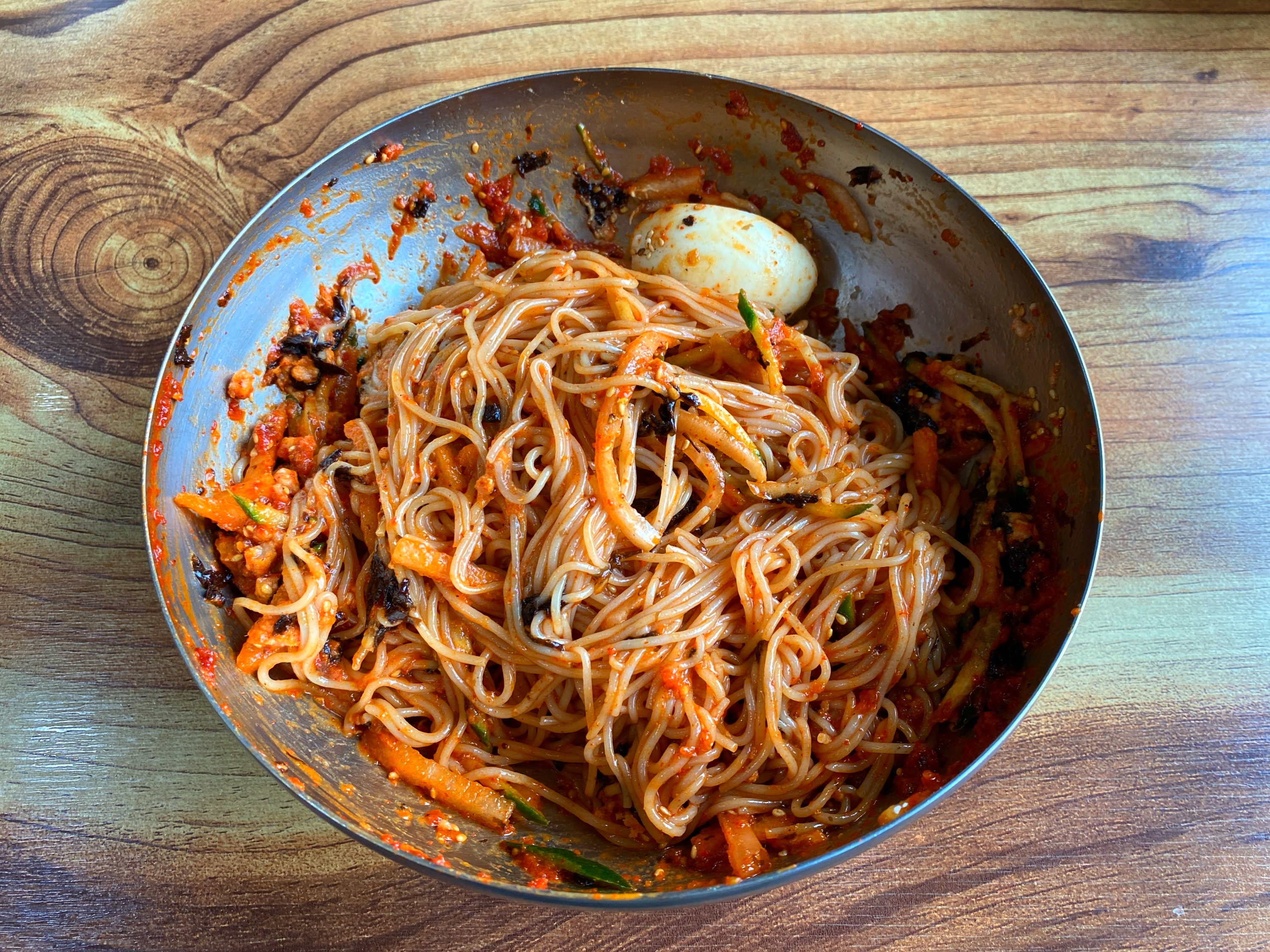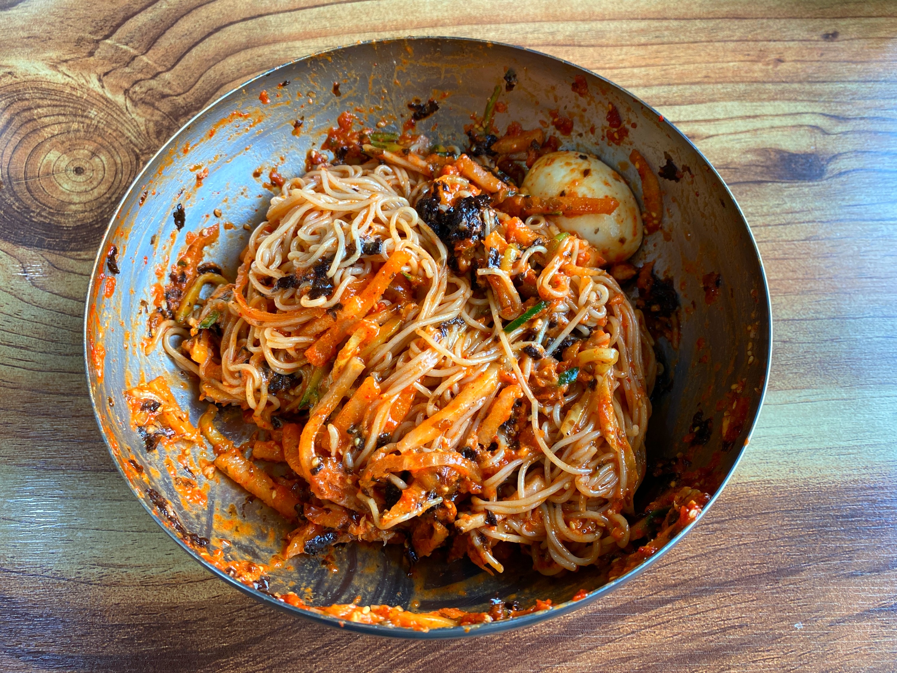 열심히 막국수를 비비는데