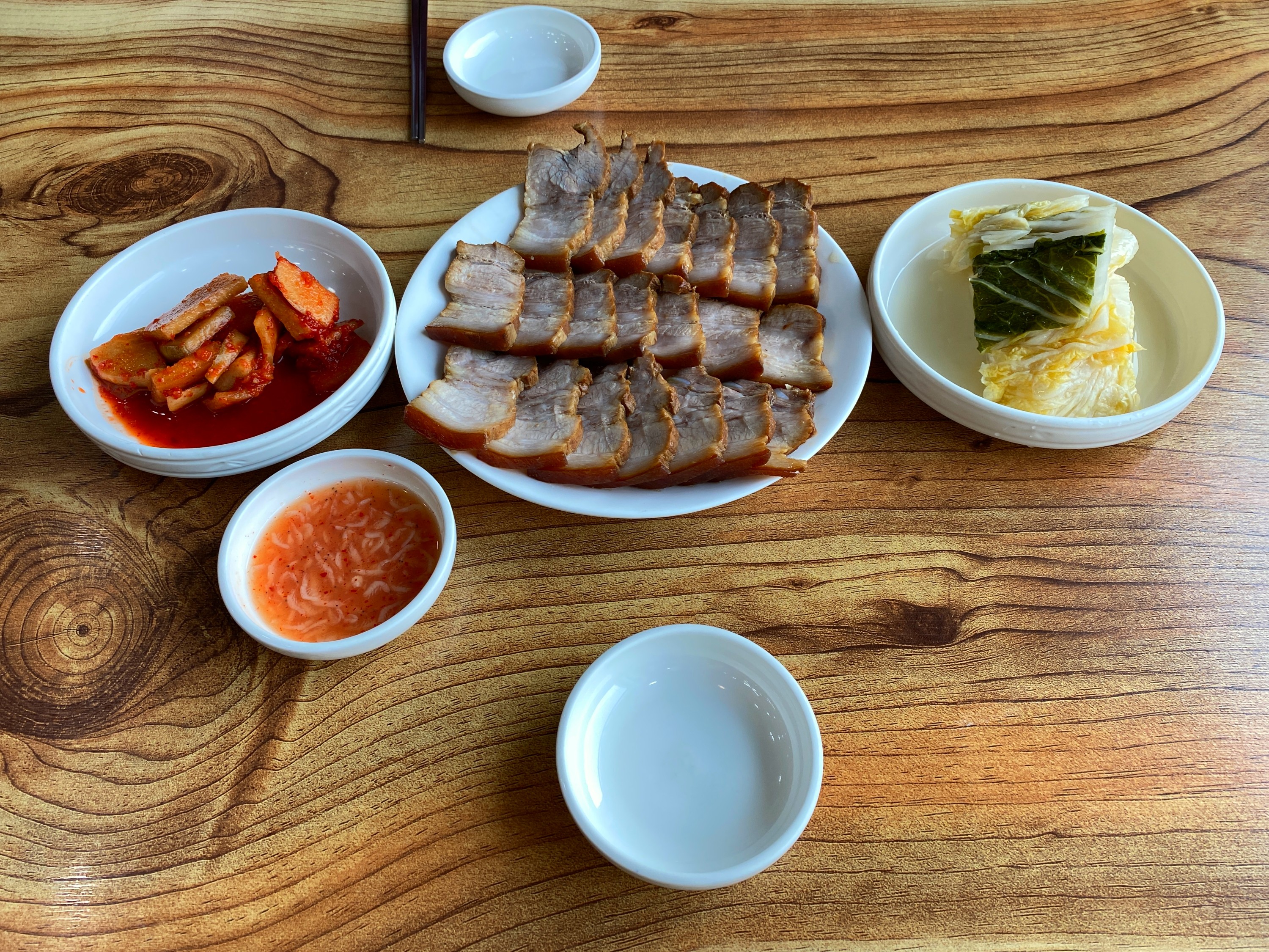 밑반찬과 편육이 나왔다.