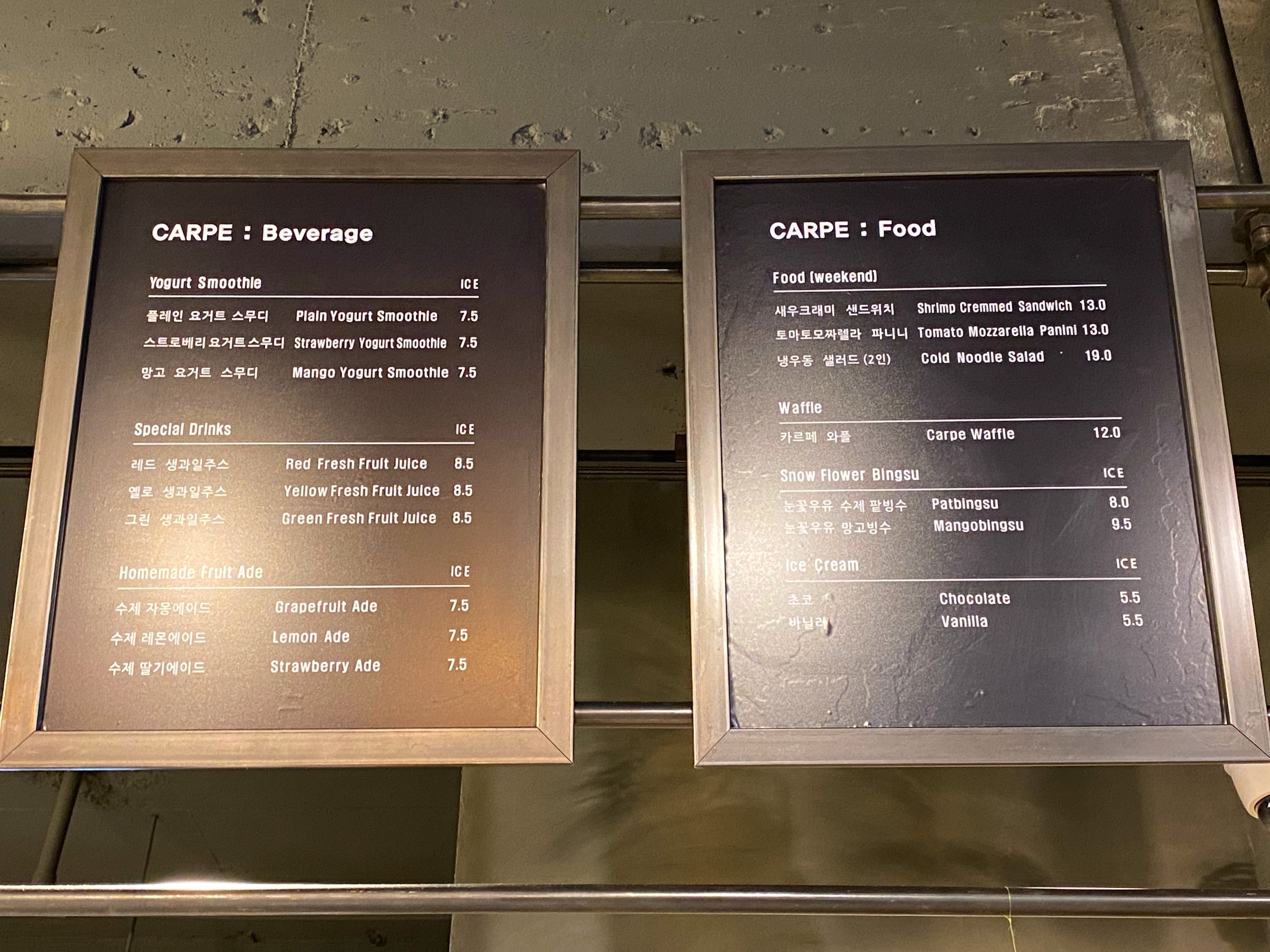 이곳의 메뉴판이다.