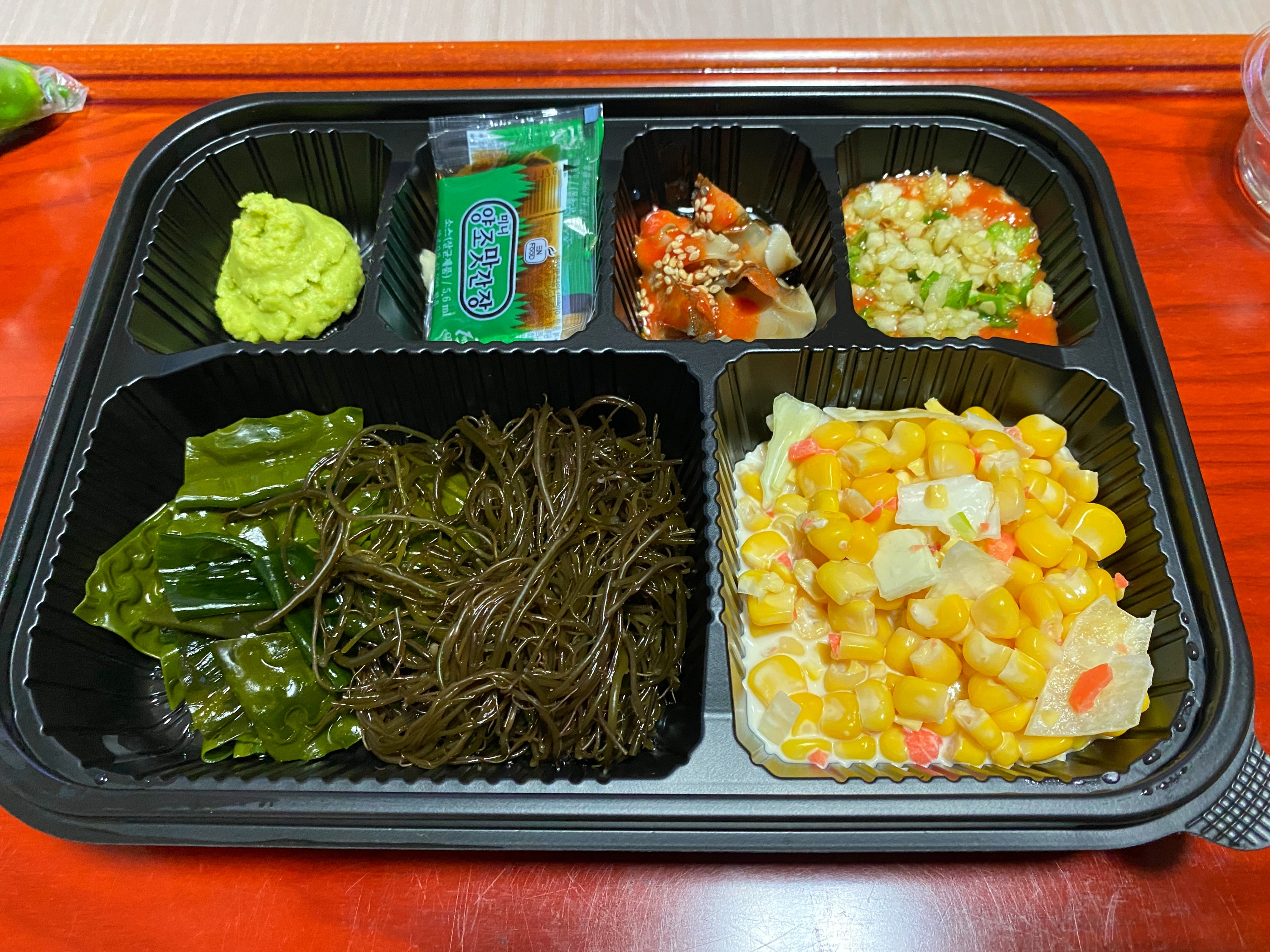 소라조림, 쌈장, 해초, 콘샐러드가 있다.