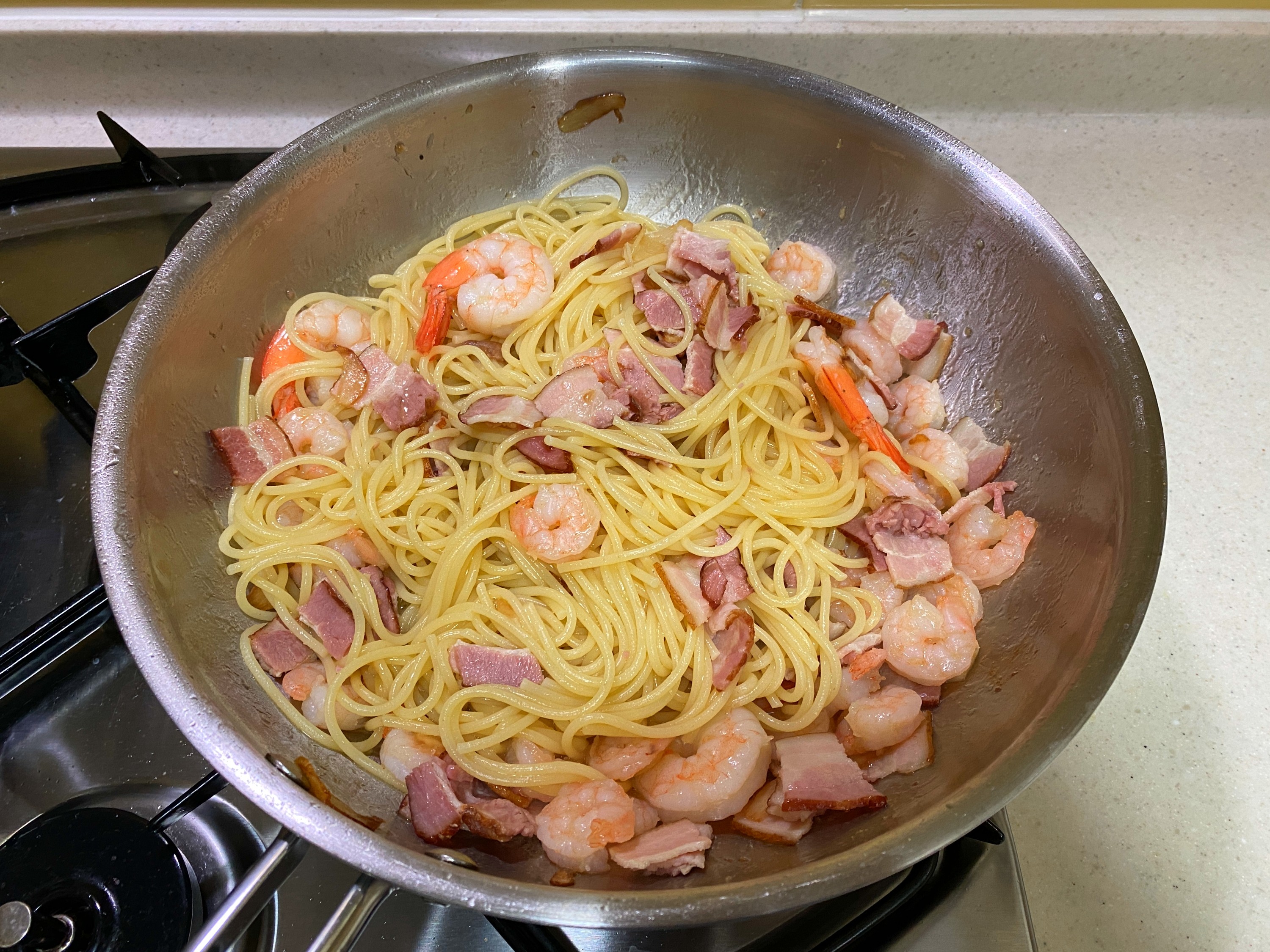 (2인분) 올리브오일, 파스타면, 마늘 10알, 베이컨 120g,
