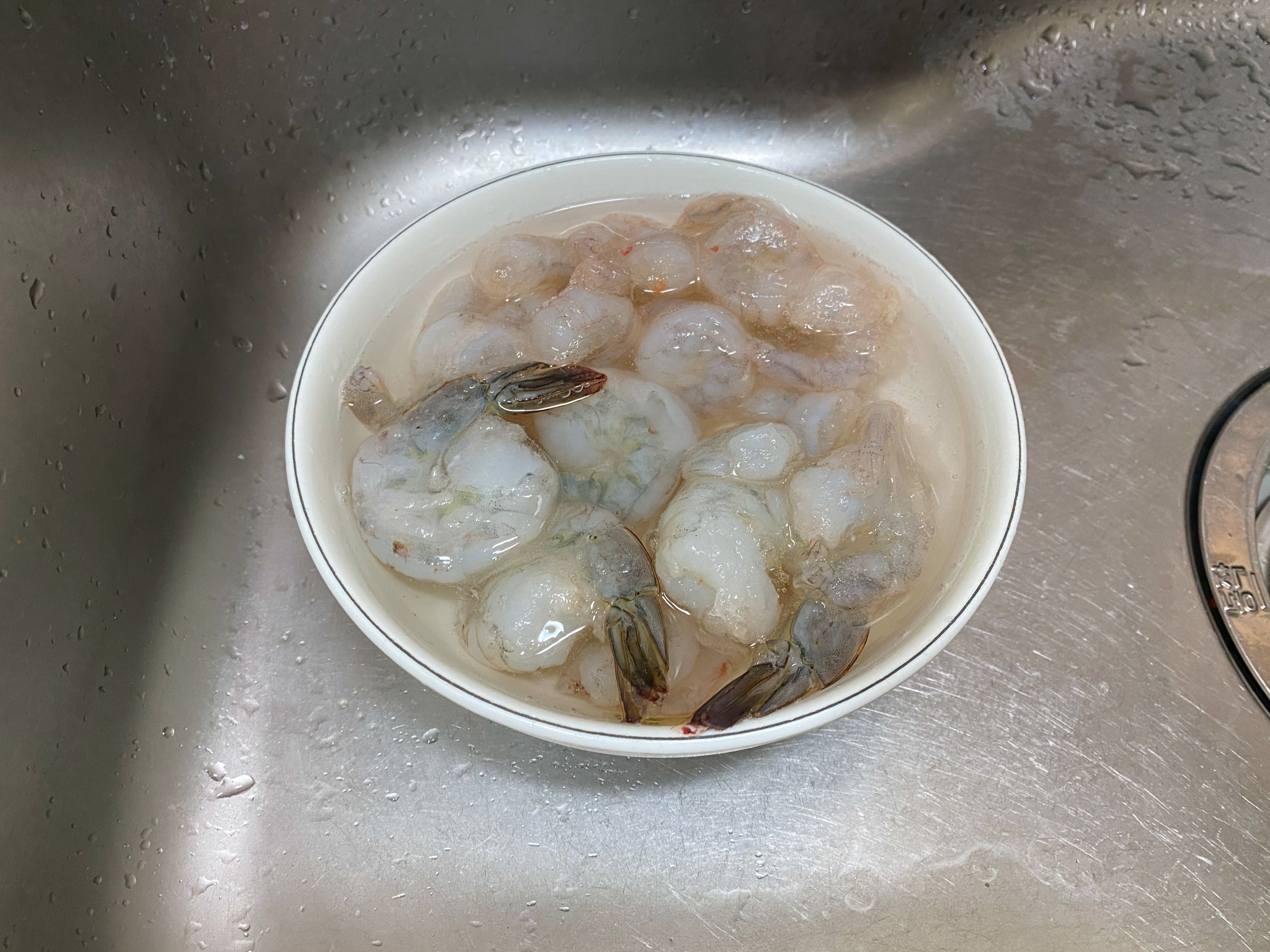 3. 냉동새우는 찬물에 담가서 30분간 해동하고