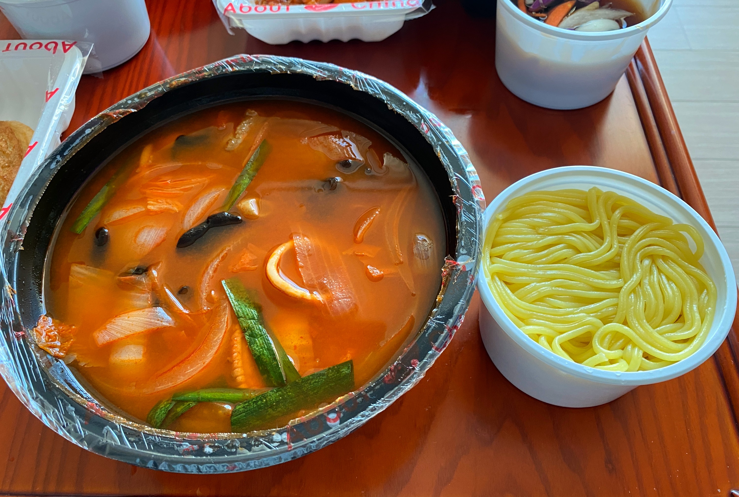 죽순, 버섯, 오징어, 목이버섯 등이 들어있다.
