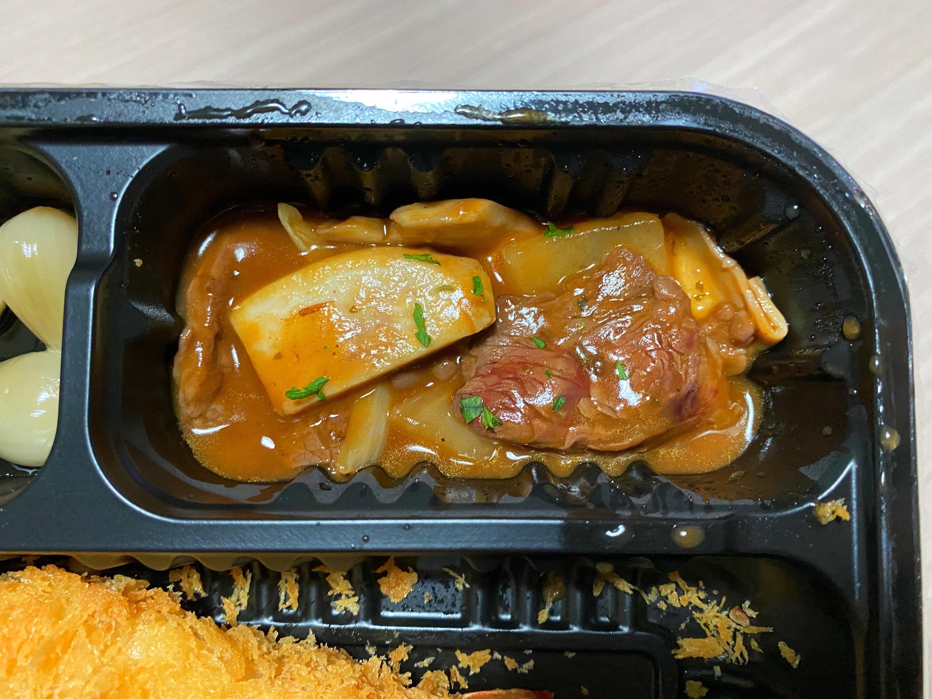 락교, 찹스테이크, 새우튀김이 있다.