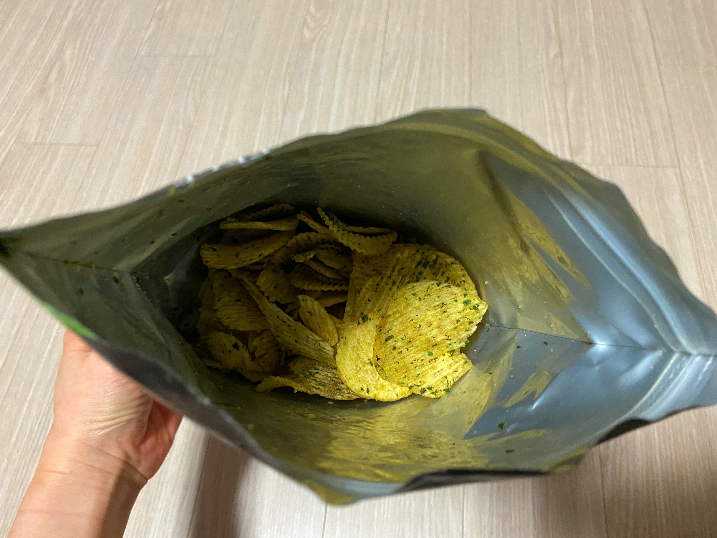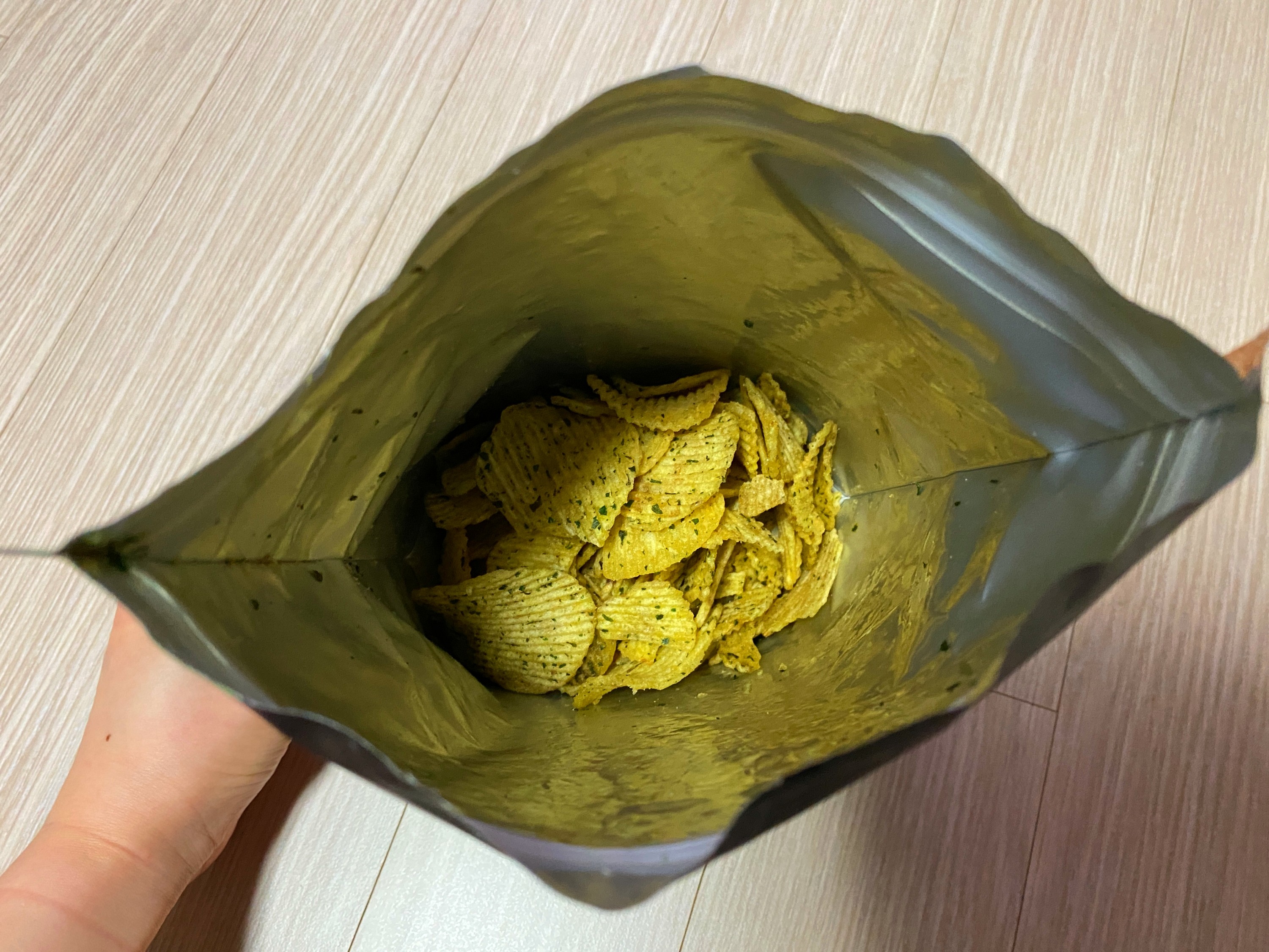 얼마 안되는 감자칩을 꺼내서