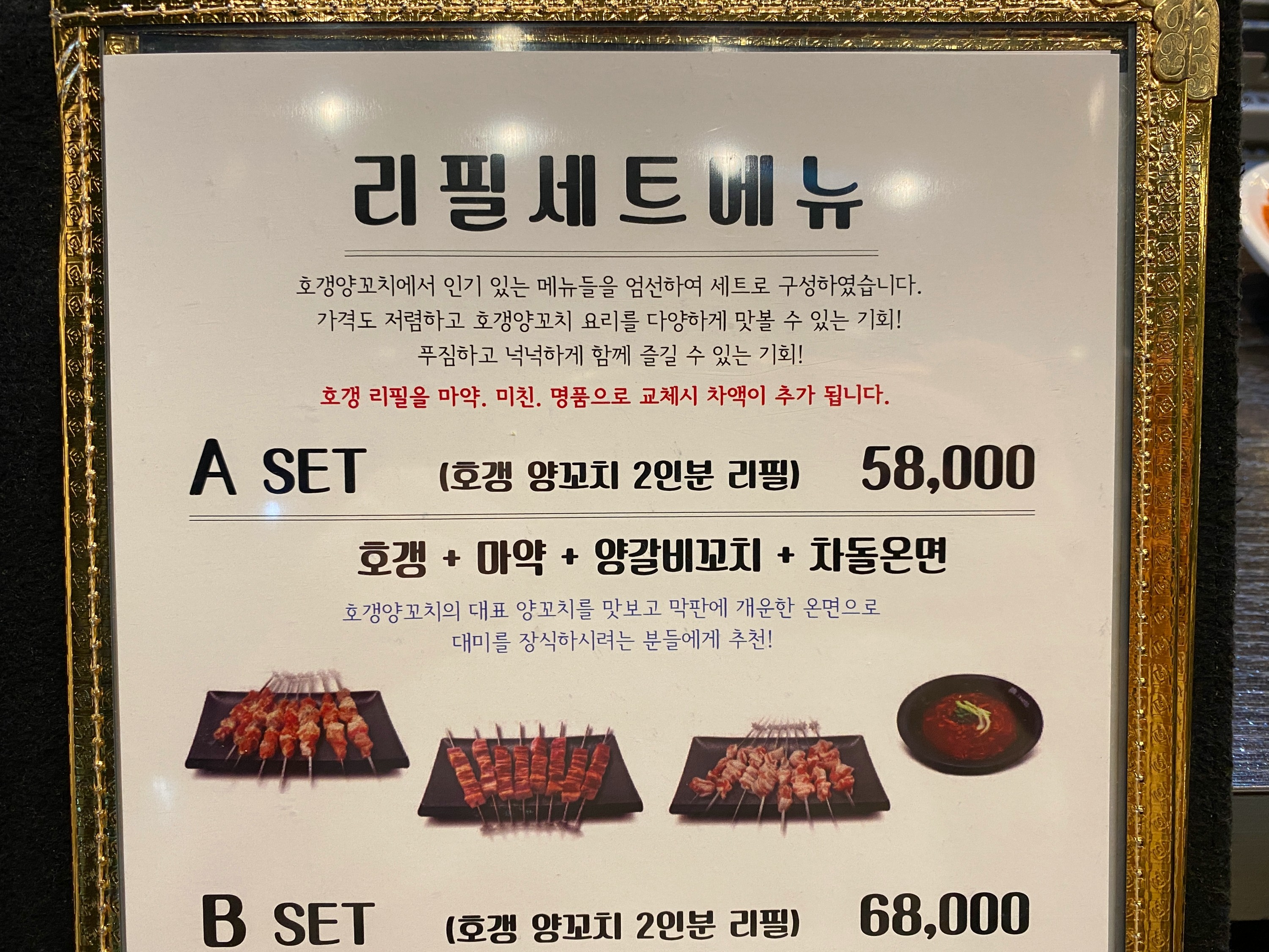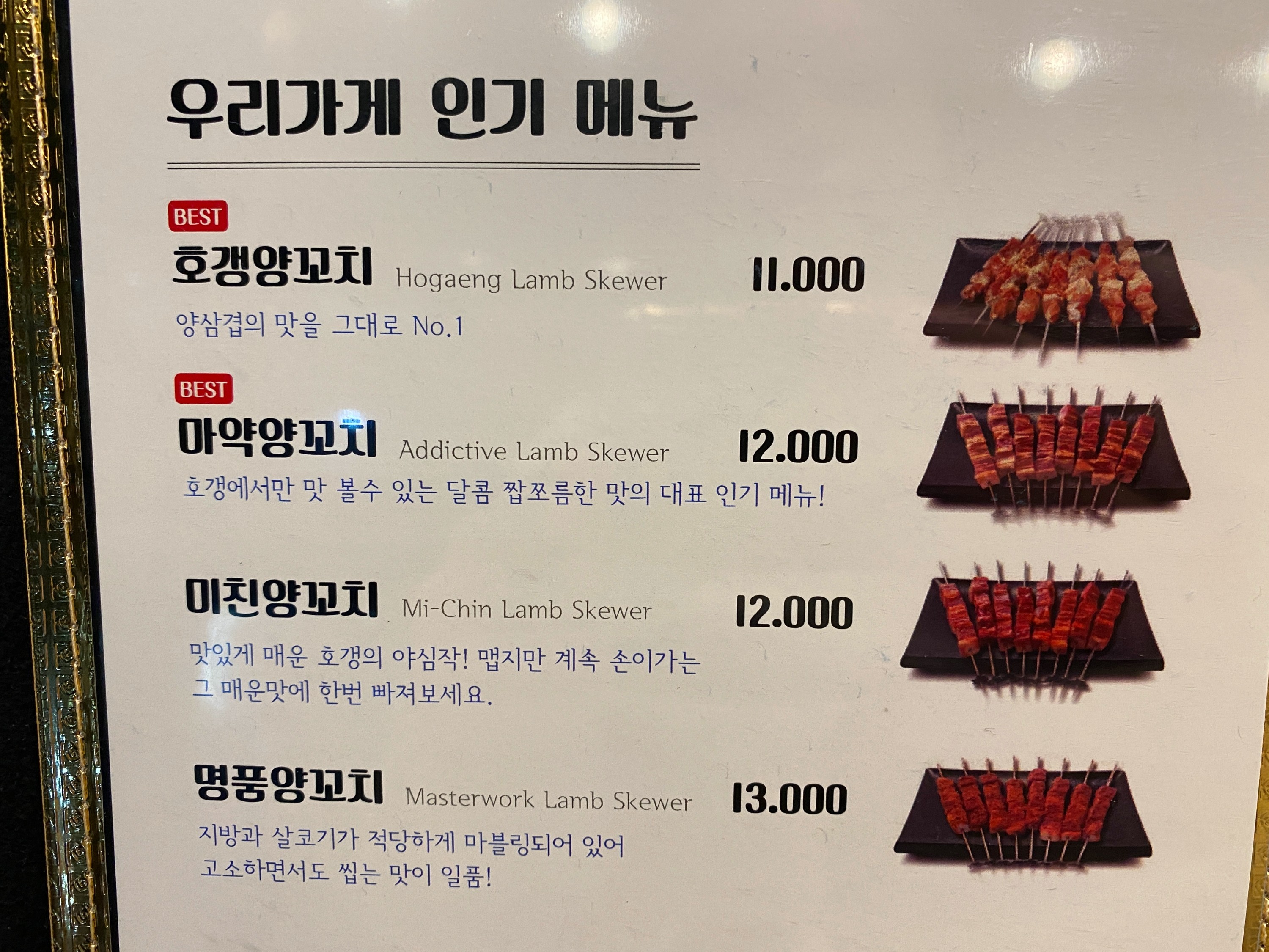 우리는 호갱양꼬치 1인분, 마약양꼬치 1인분,