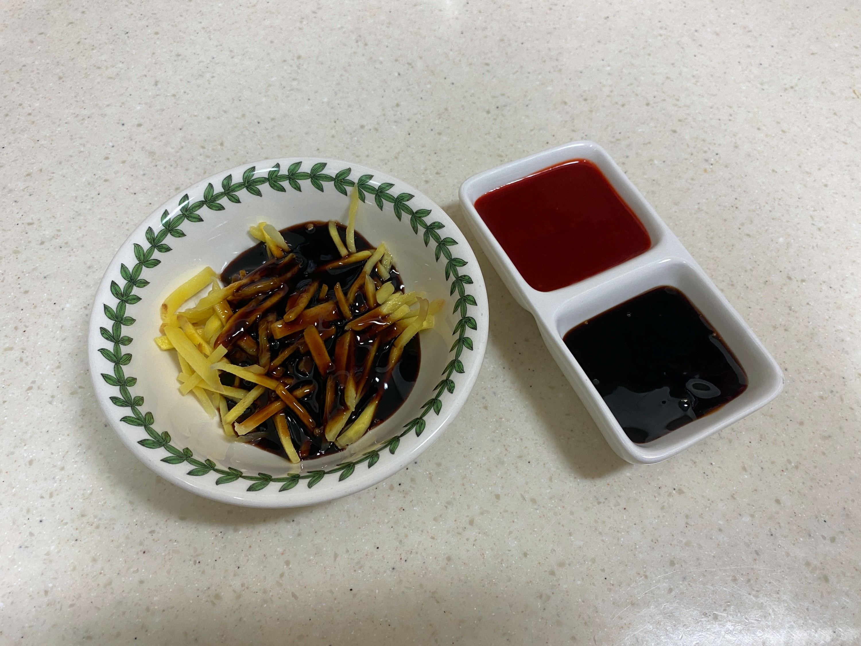 생강채는 간장소스에 절여두고