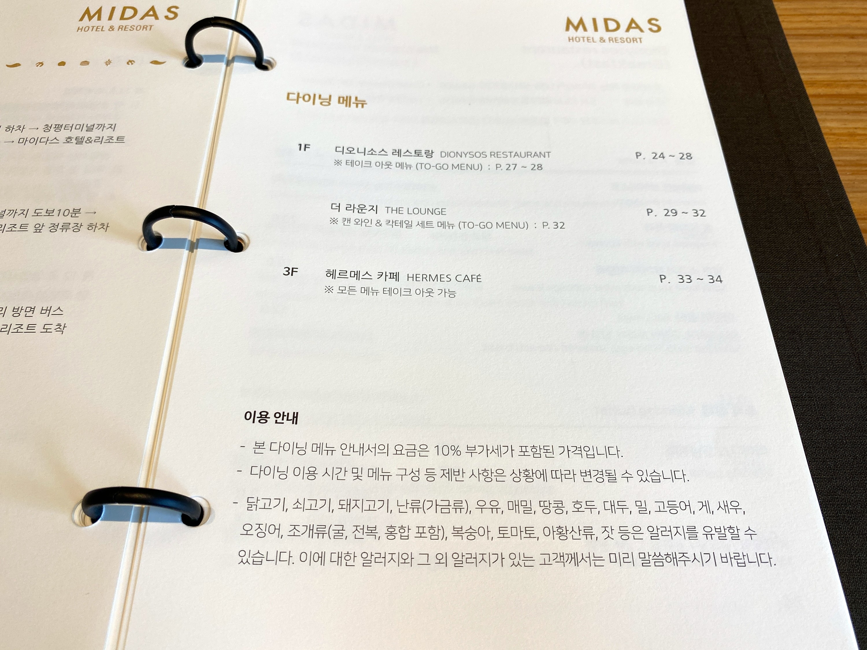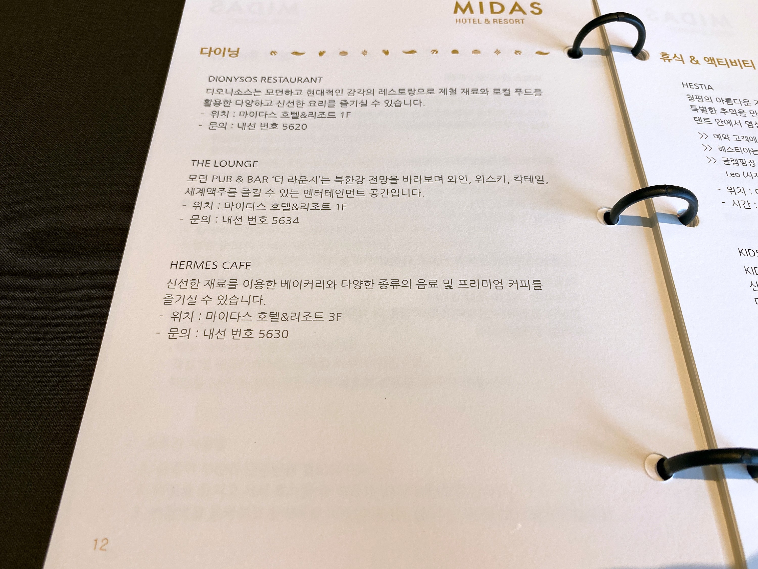 다이닝(디오니소스, 더라운지, 헤르메스카페 및 메뉴)↓