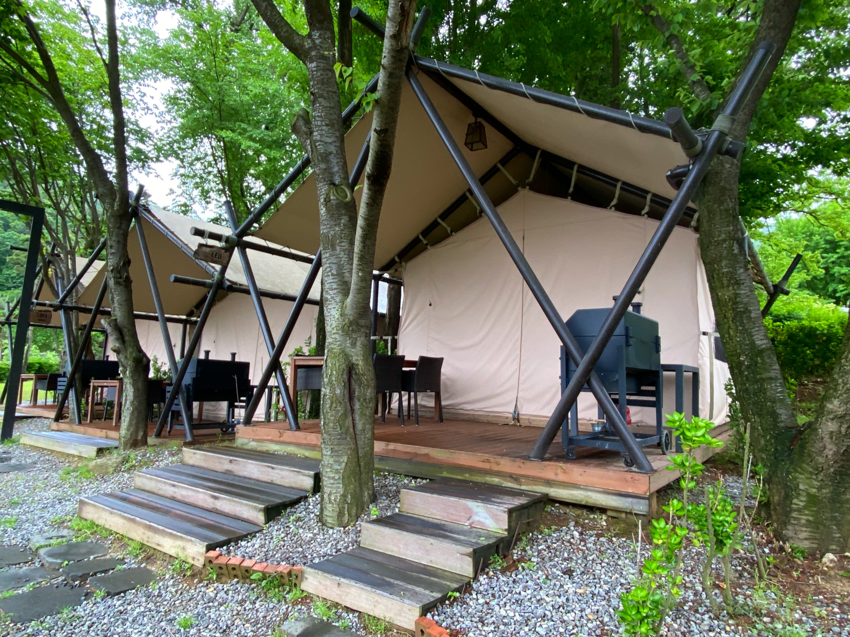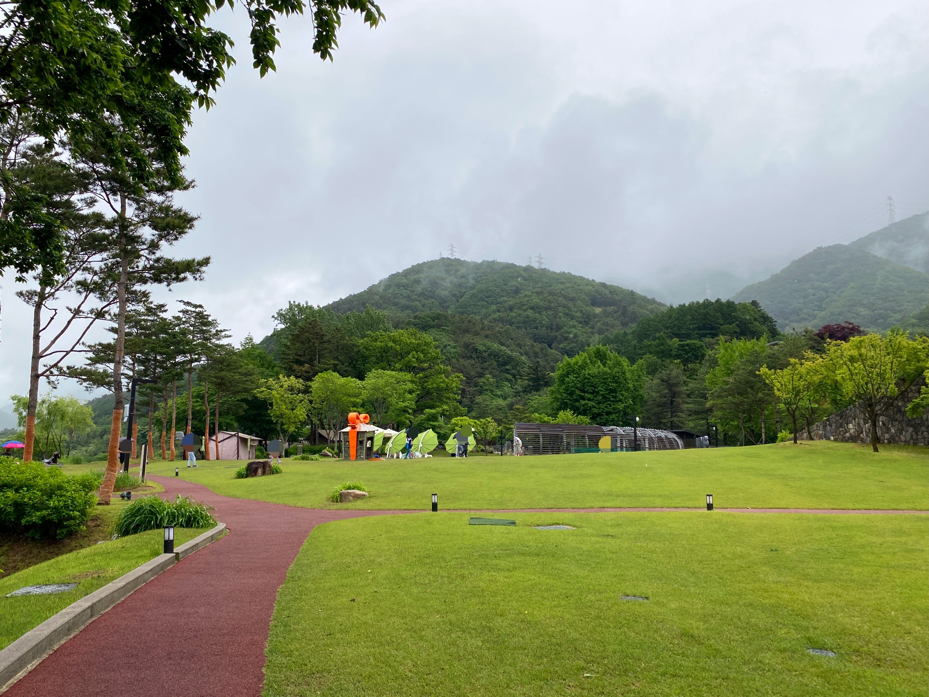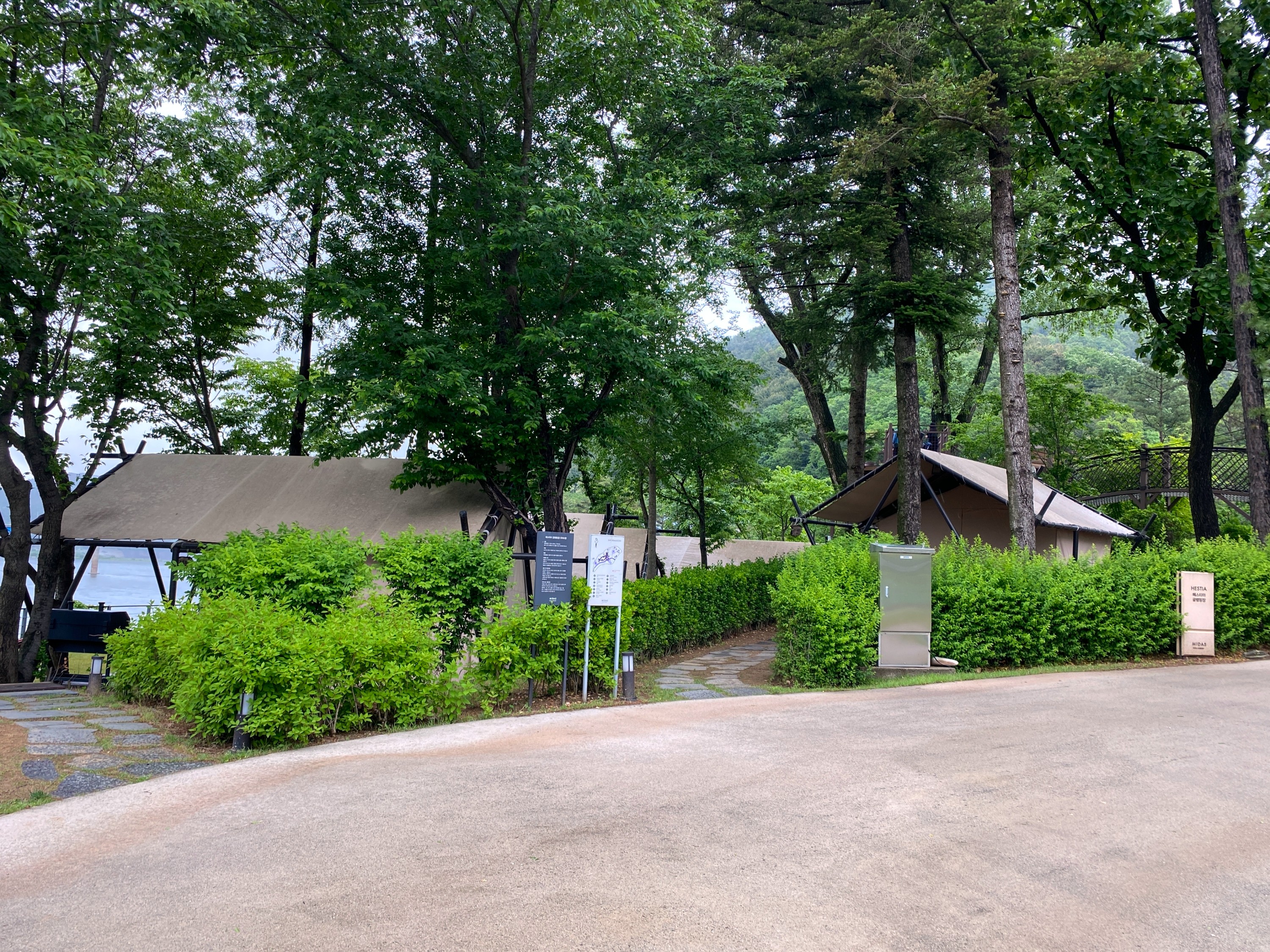 좀 더 걸으니 글램핑장이 보인다.