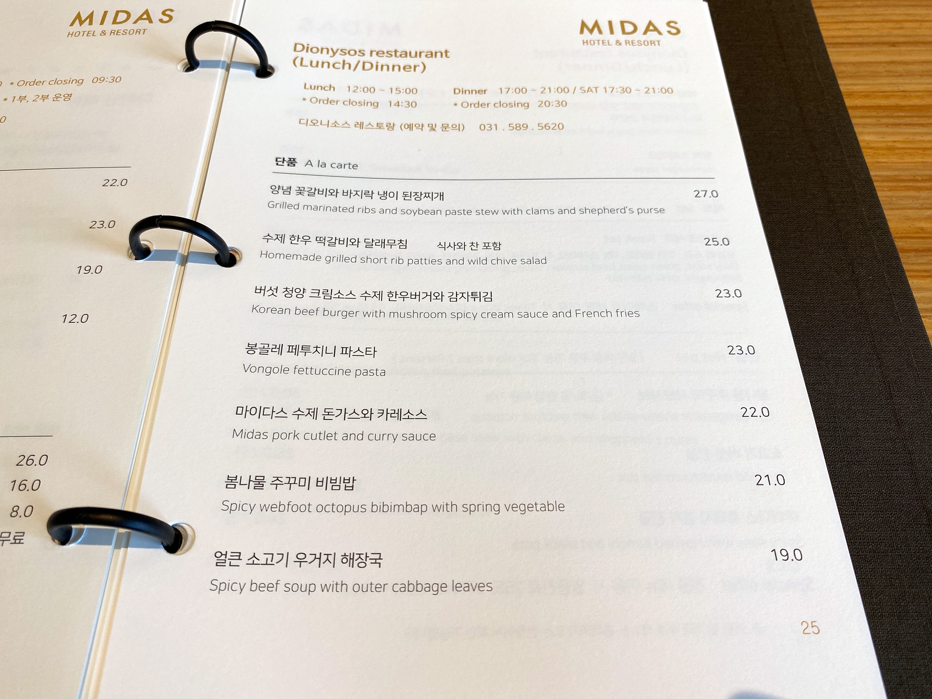 디오니소스 레스토랑 메뉴