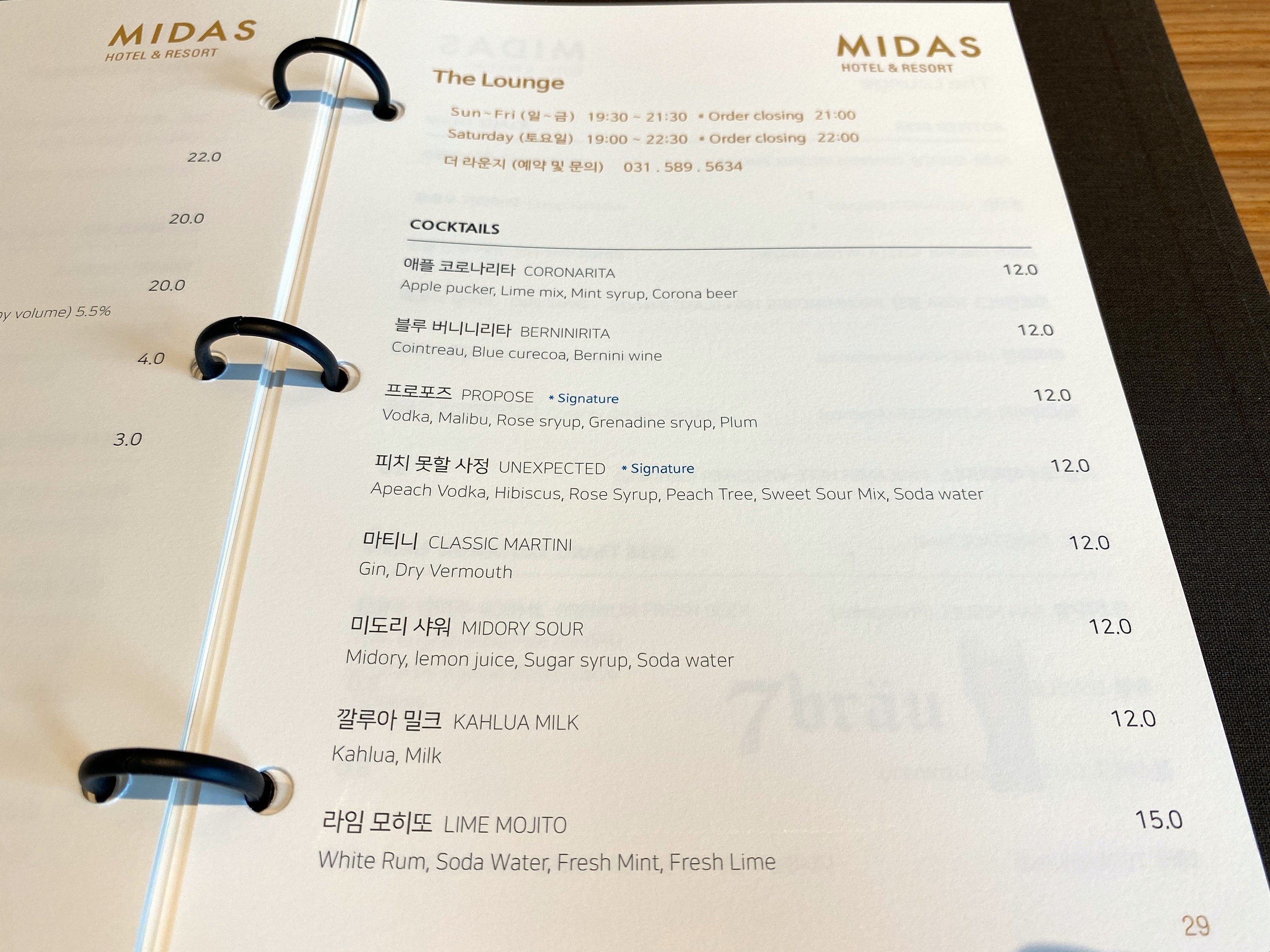 더 라운지 메뉴