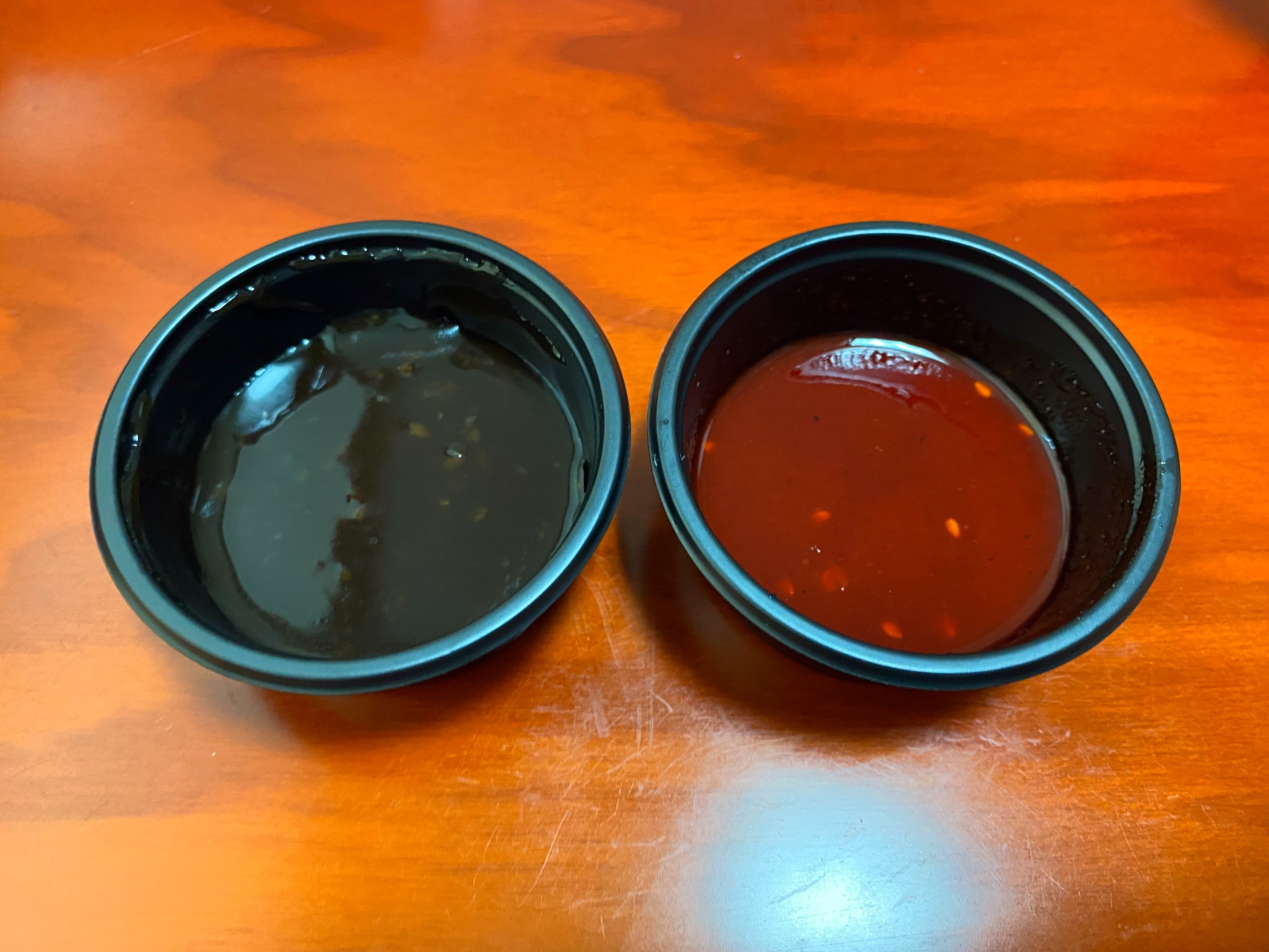 바베큐소스와 매운맛소스를 통에 담아서 준 것 같다.