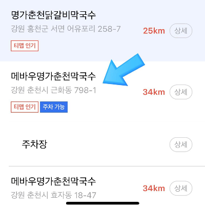 티맵에서는 메바우 명가춘천막국수로 나오므로