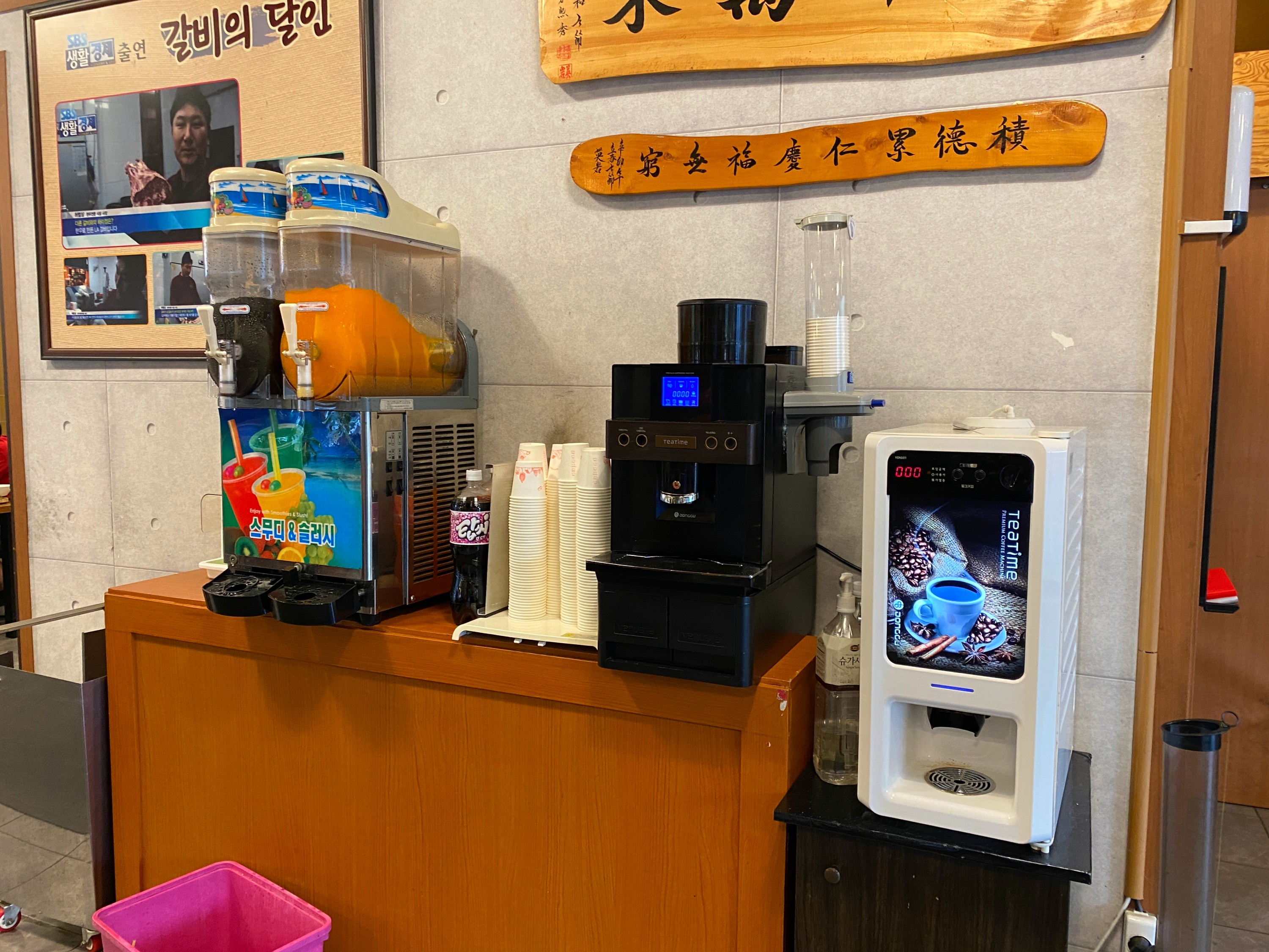 슬러시 기계와 커피머신이 보인다.