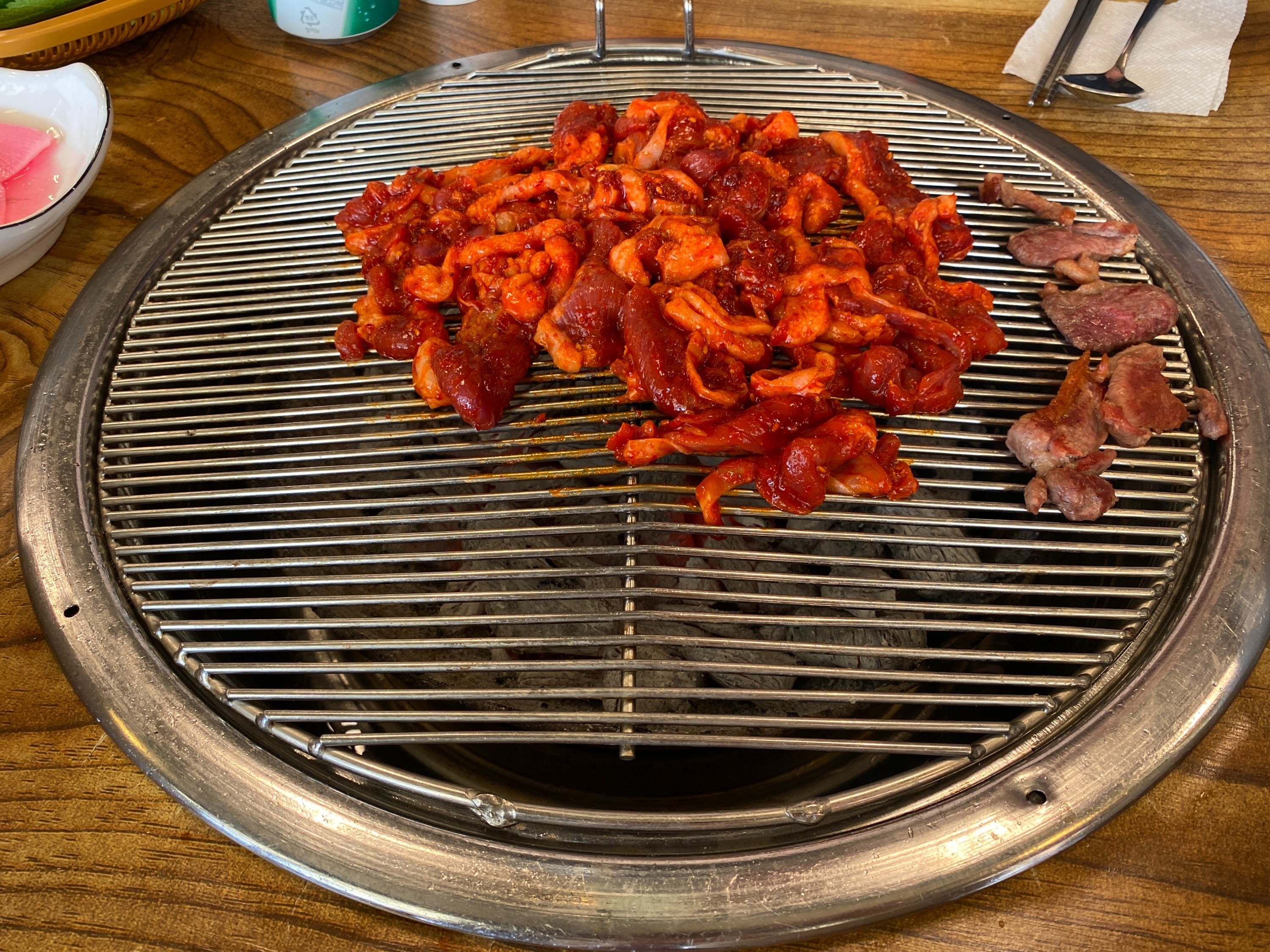 숯불이 나왔다.