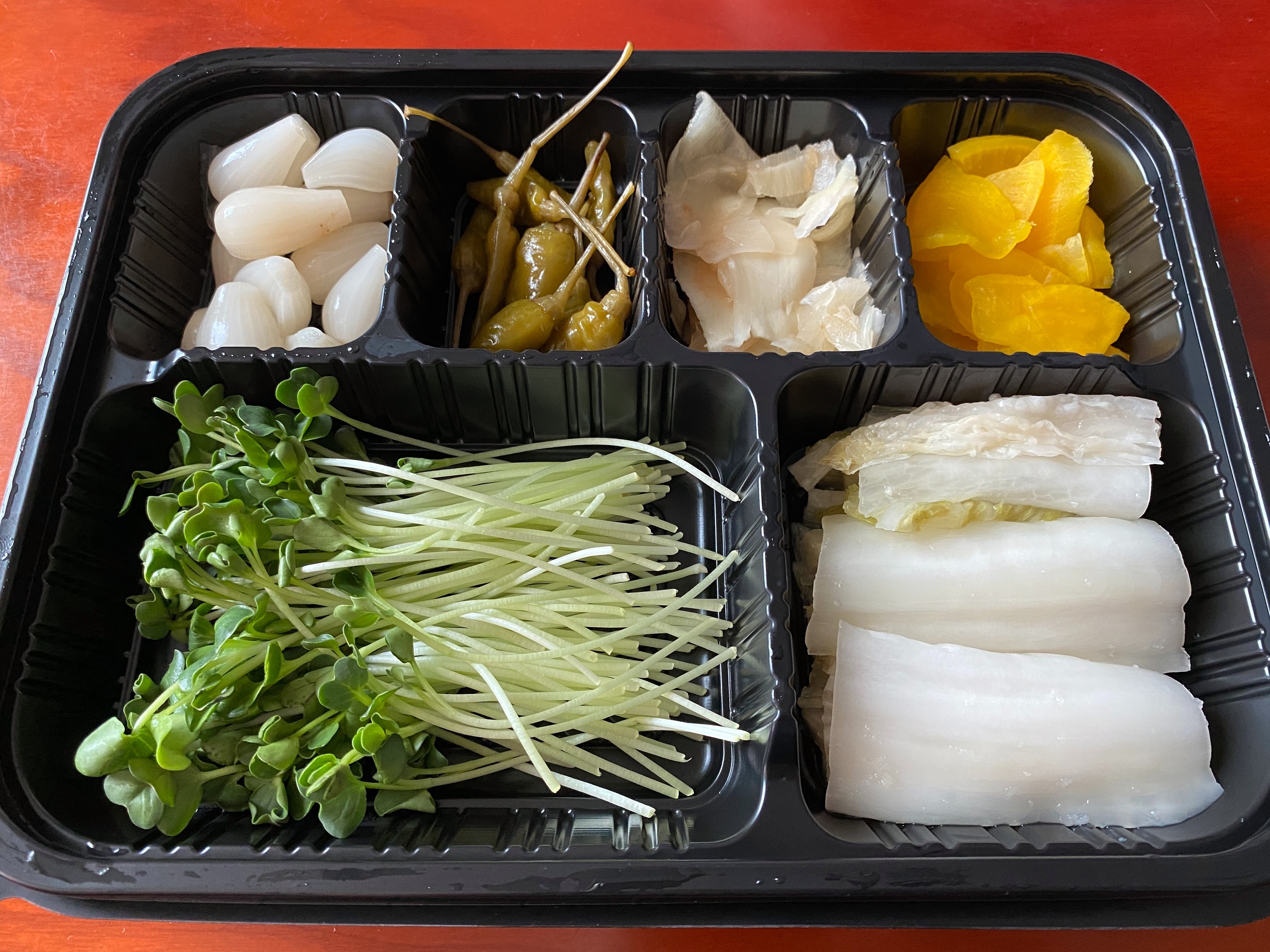 단무지, 무순, 백김치가 왔다.