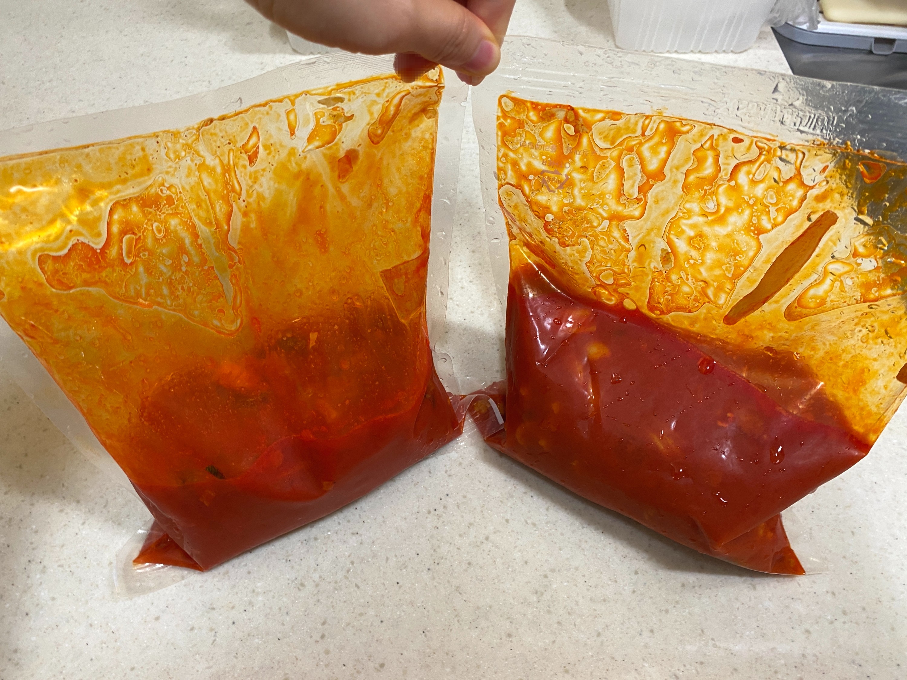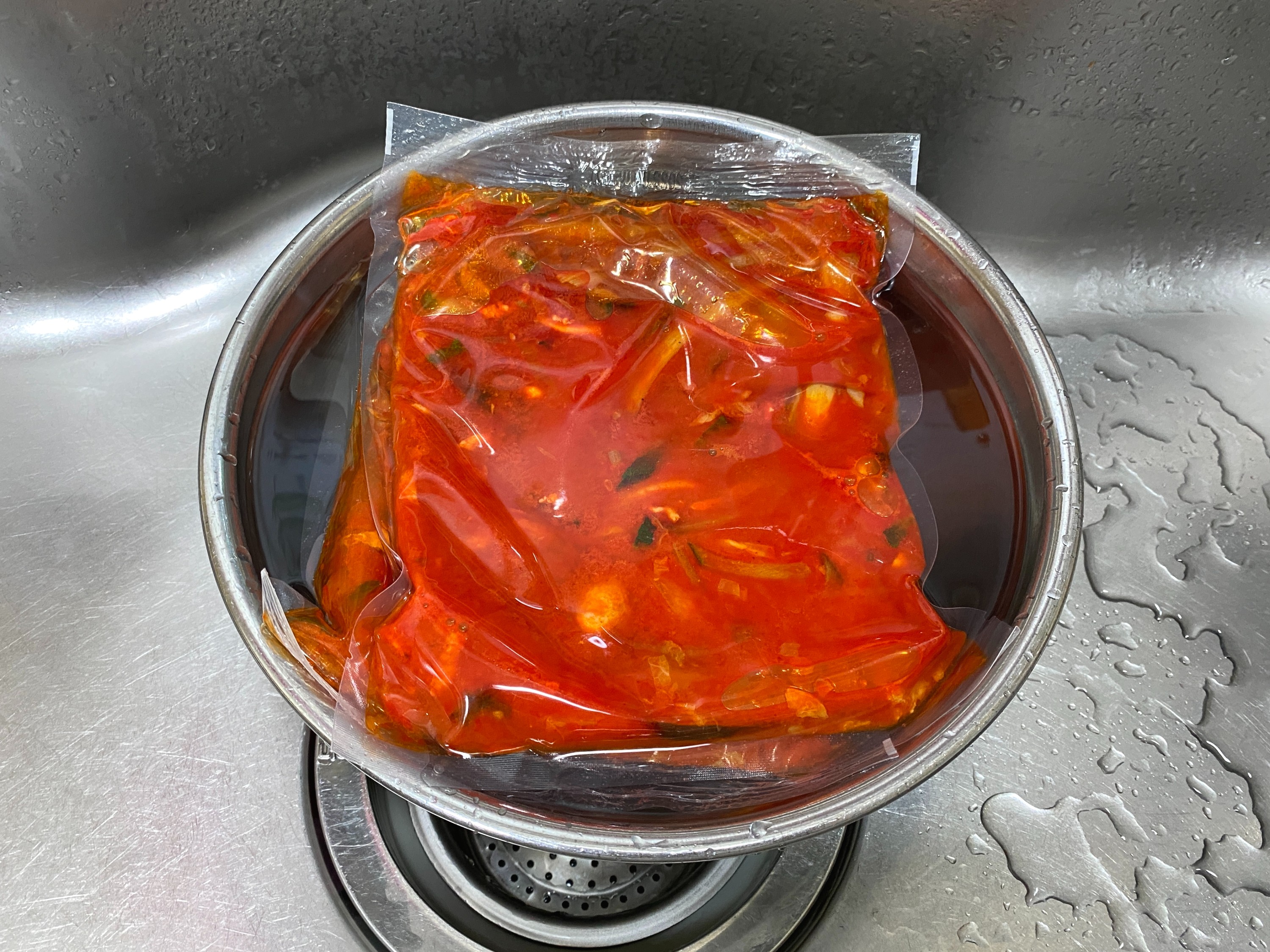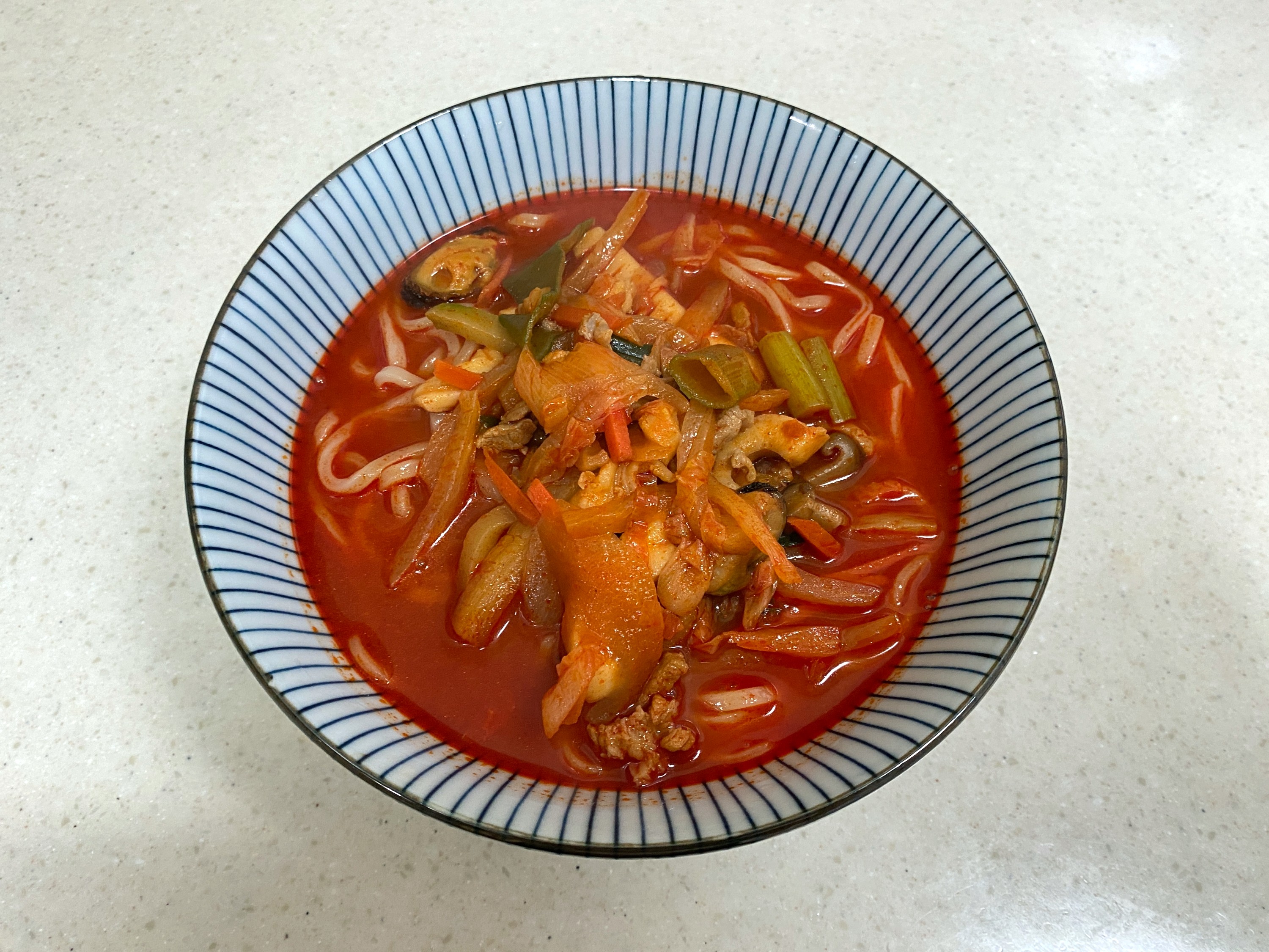 (해동하는 과정에서 짬뽕탕을 볼에 우겨넣다가