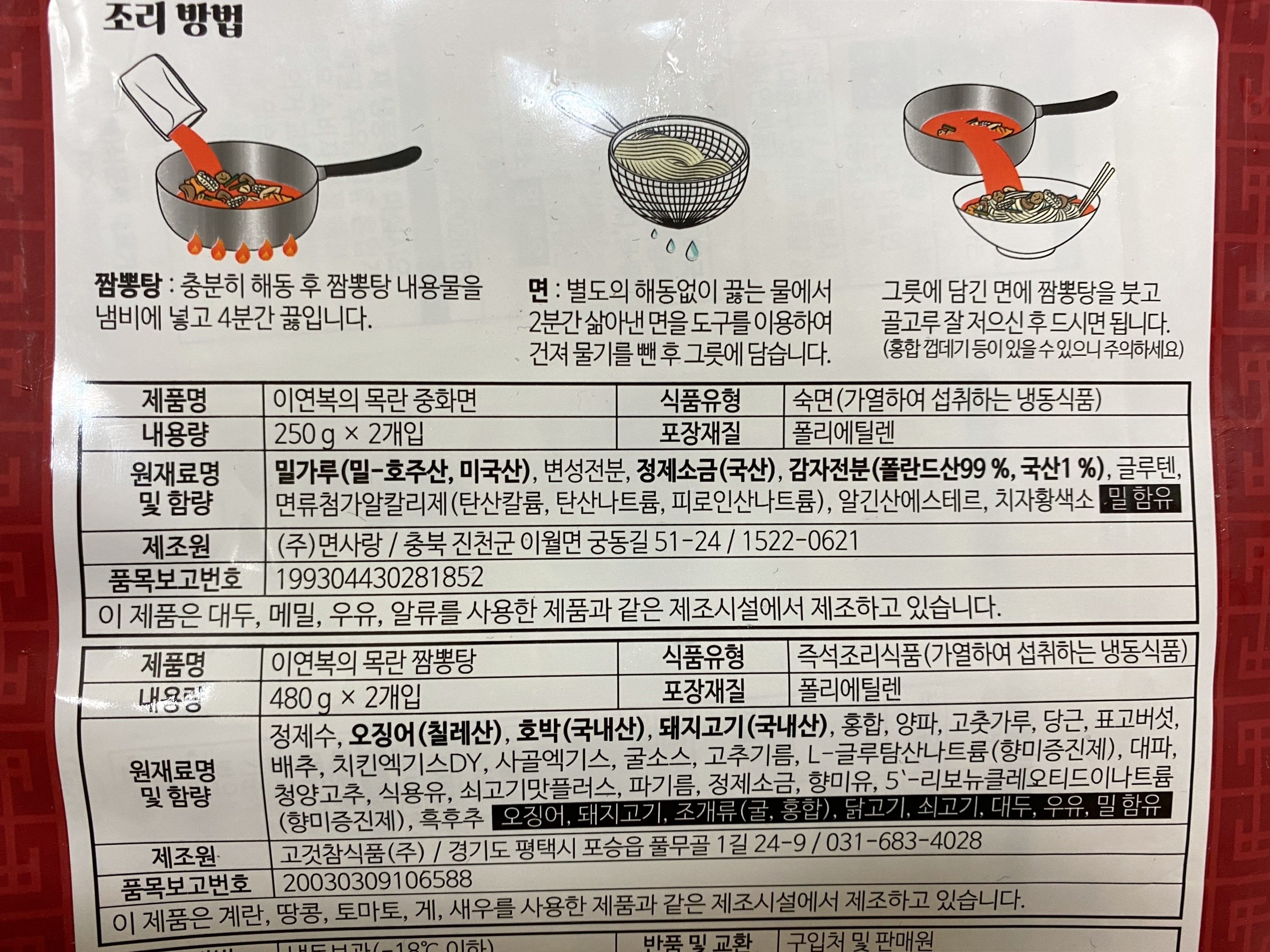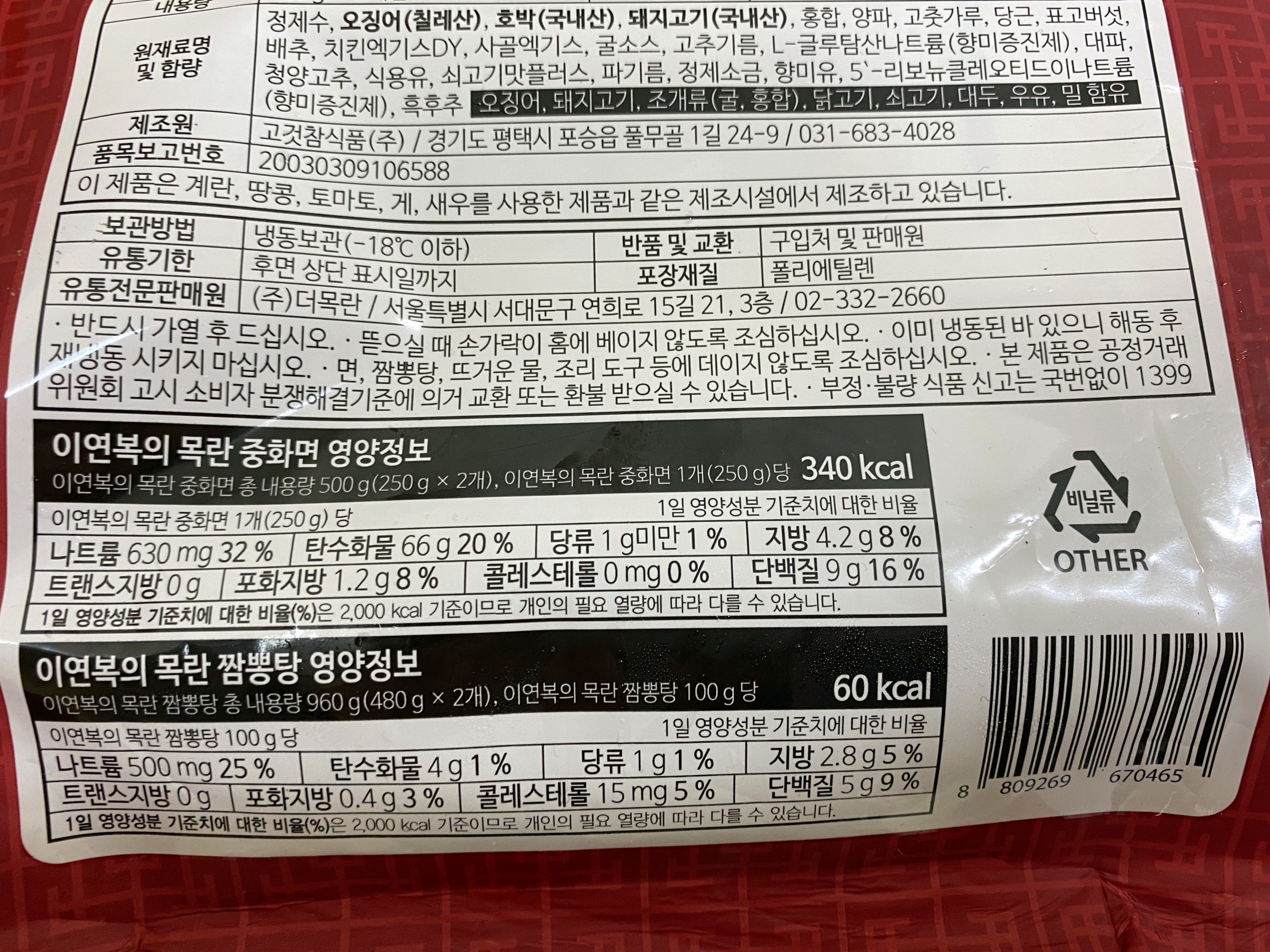 짬뽕탕의 원재료 및 영양정보도 적혀있다.