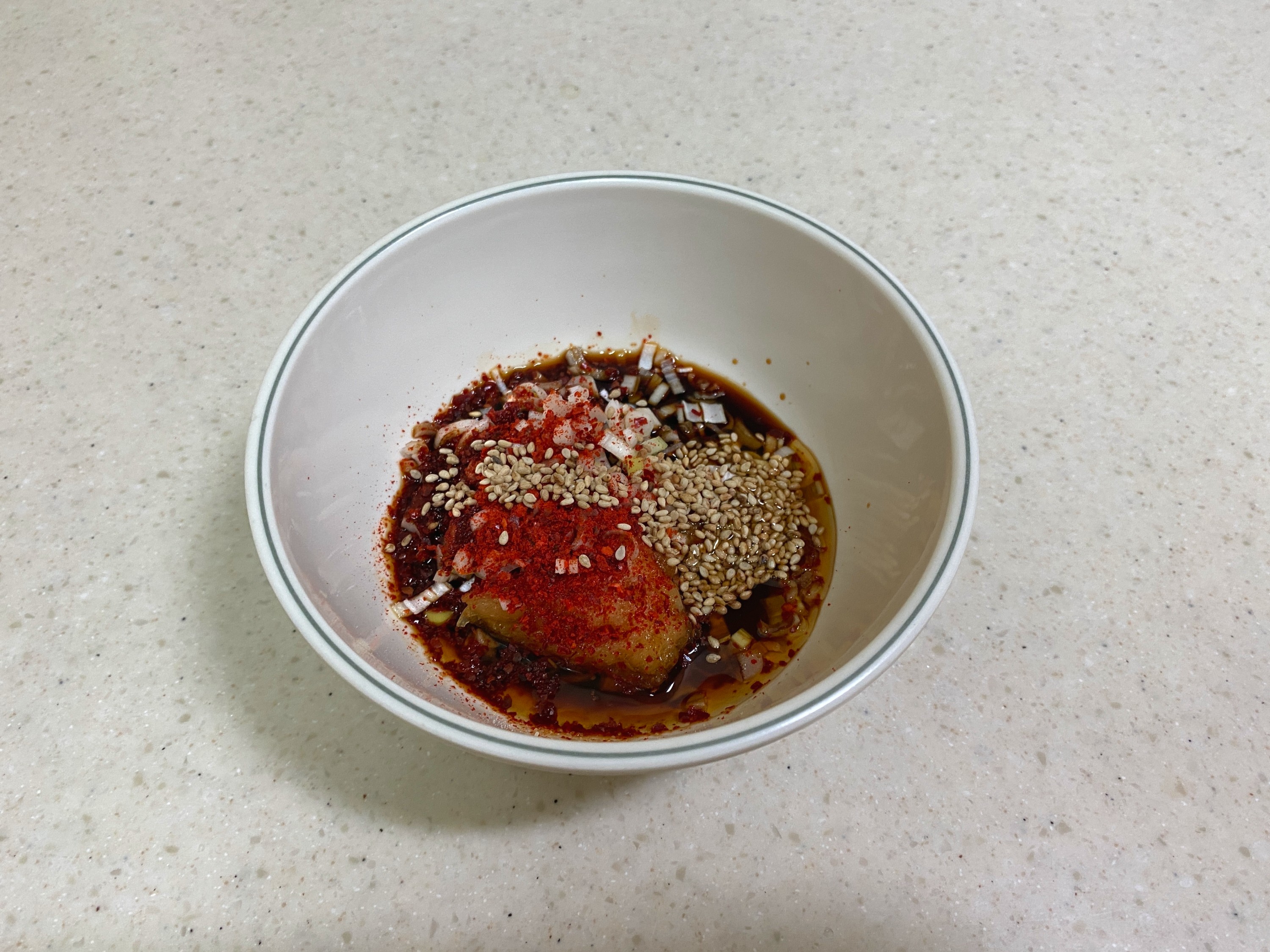 고춧가루 0.5스푼, 들기름 1스푼, 다진파 3스푼,