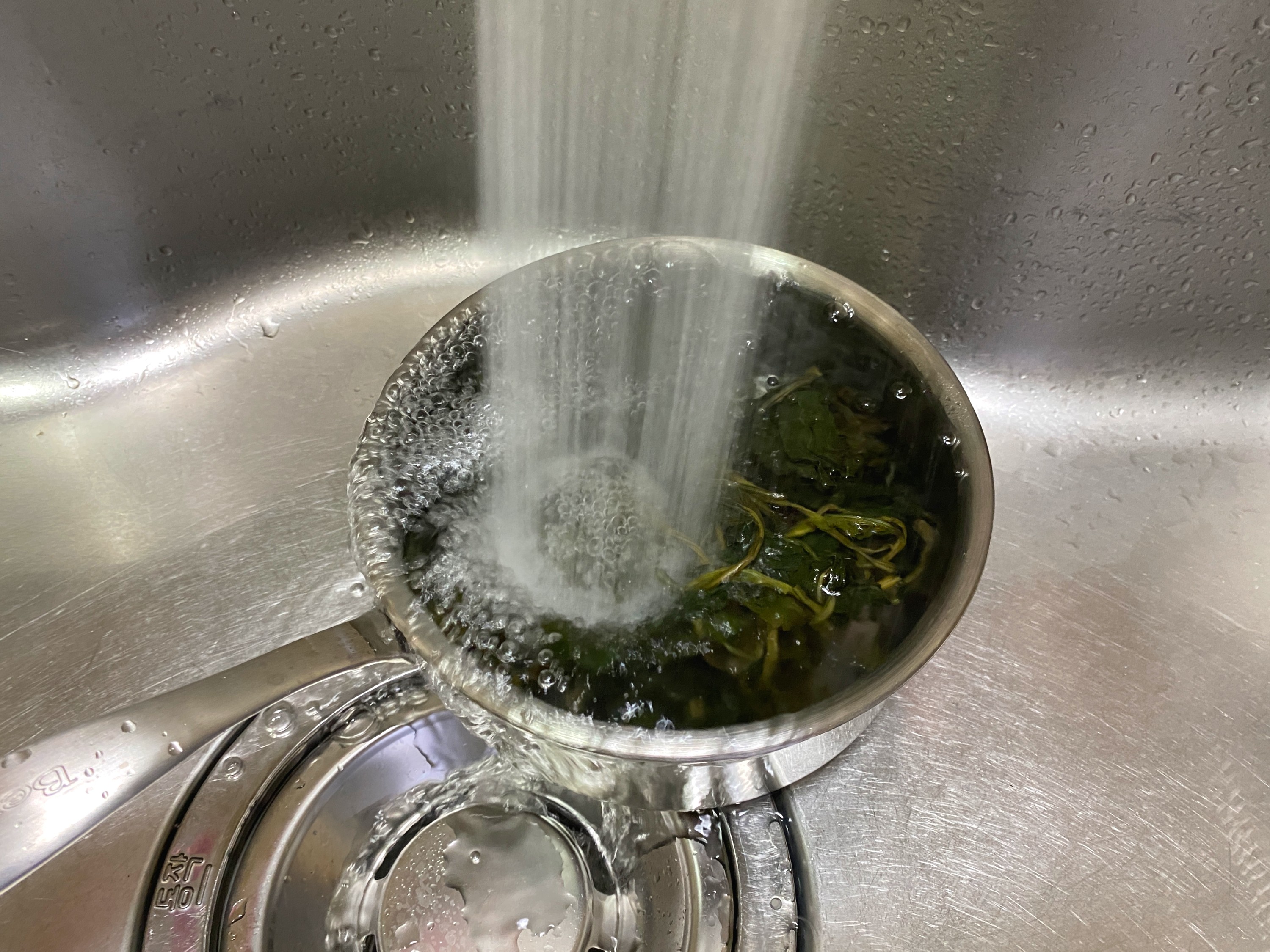 4. 나물은 찬물에 여러번 헹궈준 뒤,