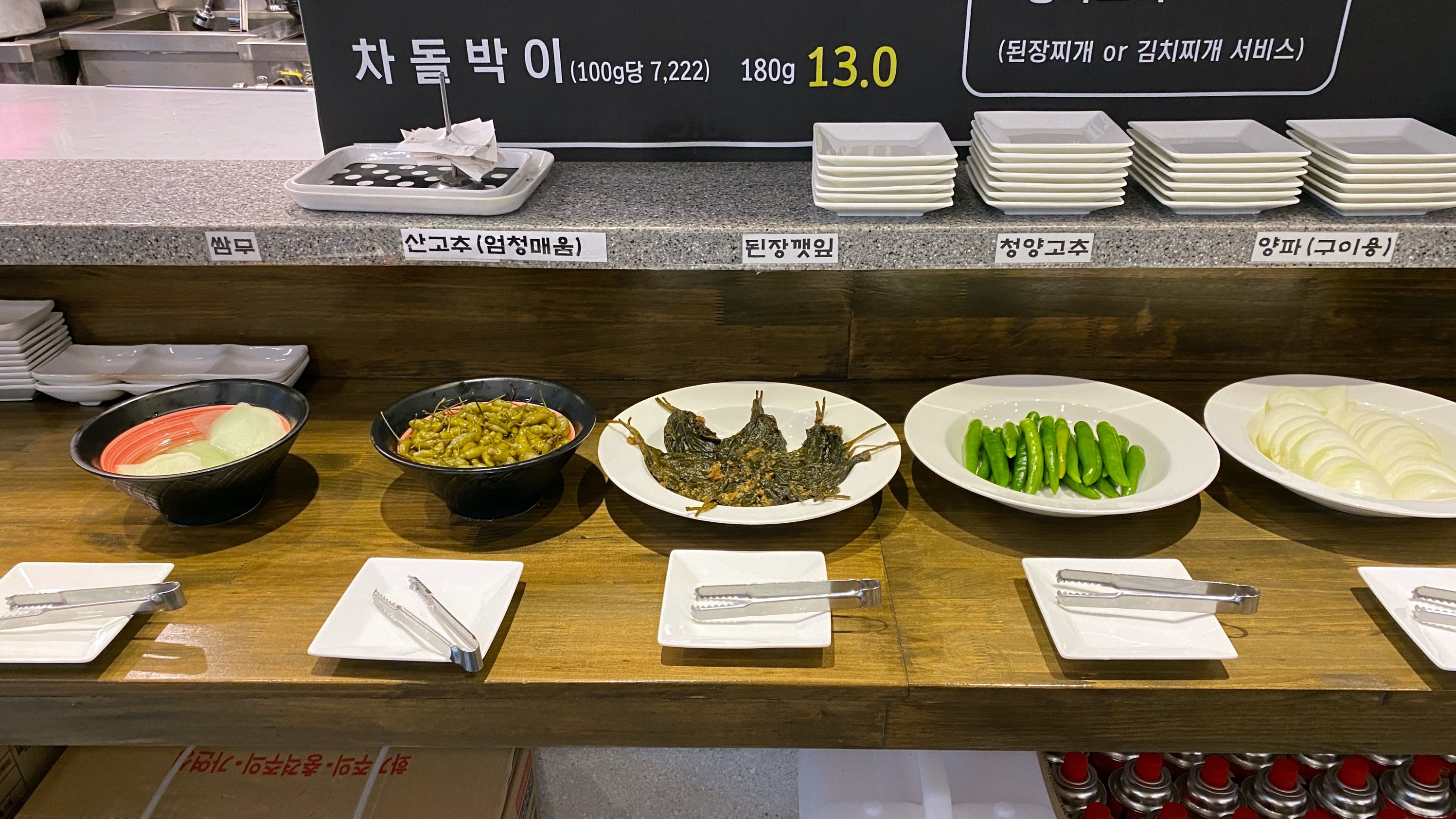 그 밖에도 쌈무, 산고추절임, 된장깻잎, 청양고추, 양파
