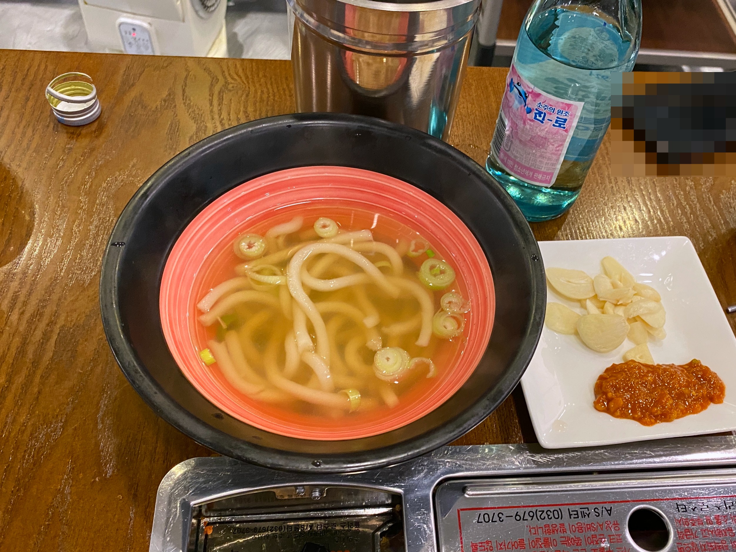 우동은 서비스로 주셨고, 맛은 쏘쏘했다.