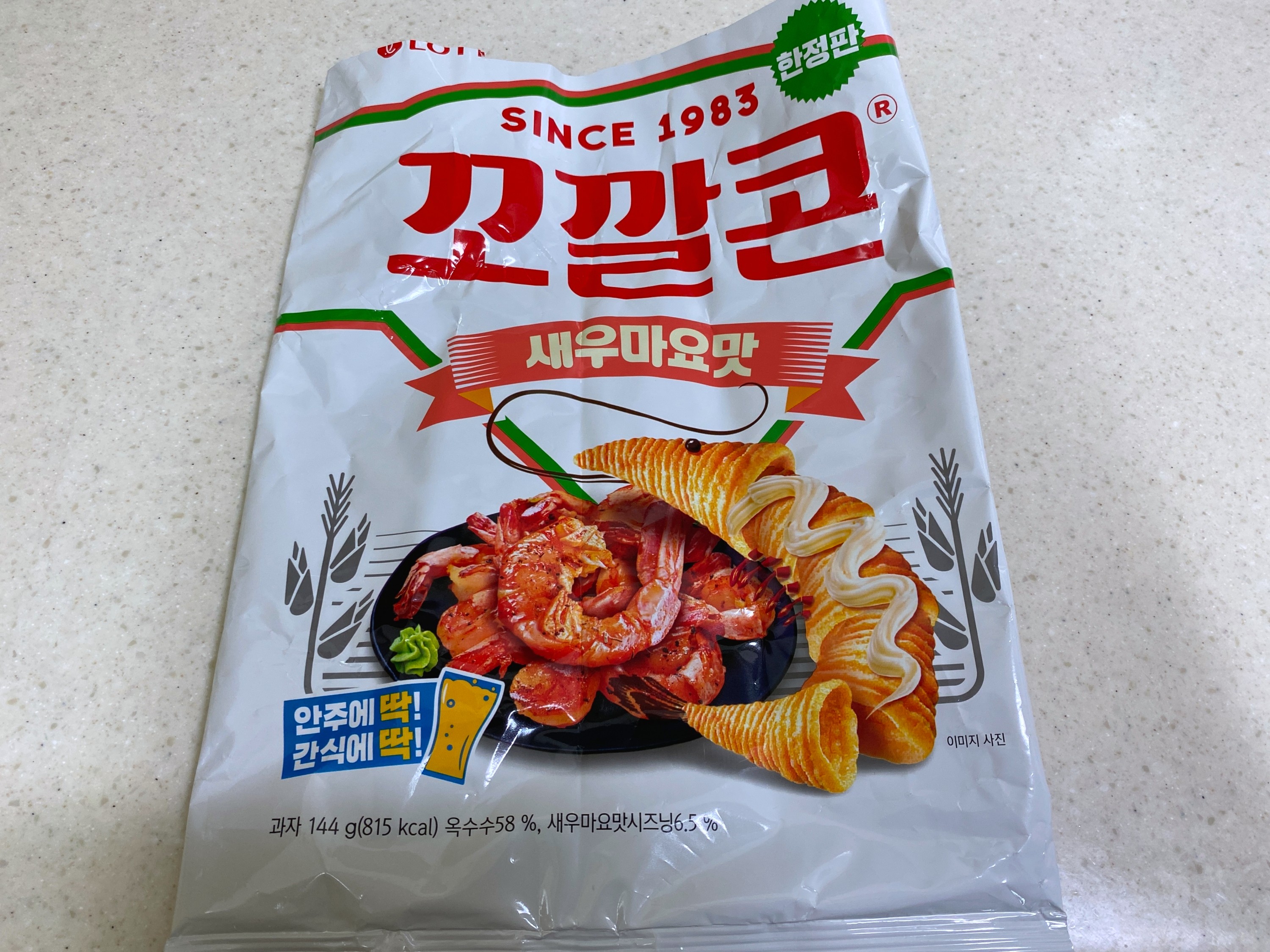 꼬깔콘 새우마요맛은 새우의 꼬릿한 향과
