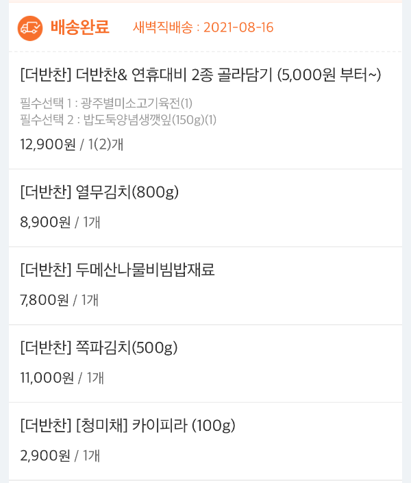 내가 주문한 반찬들 중에