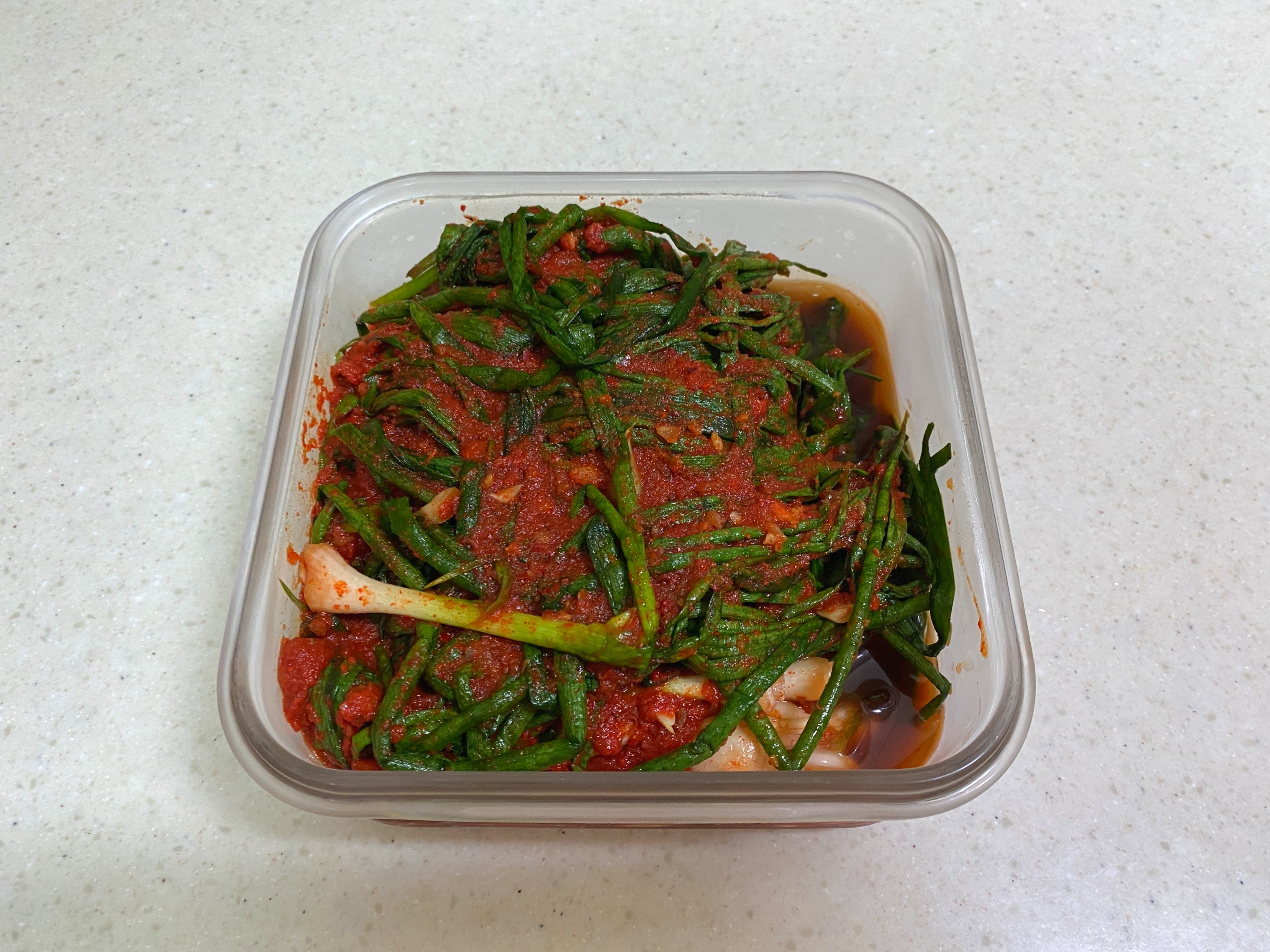 쪽파김치는 익지 않은 상태로 왔고