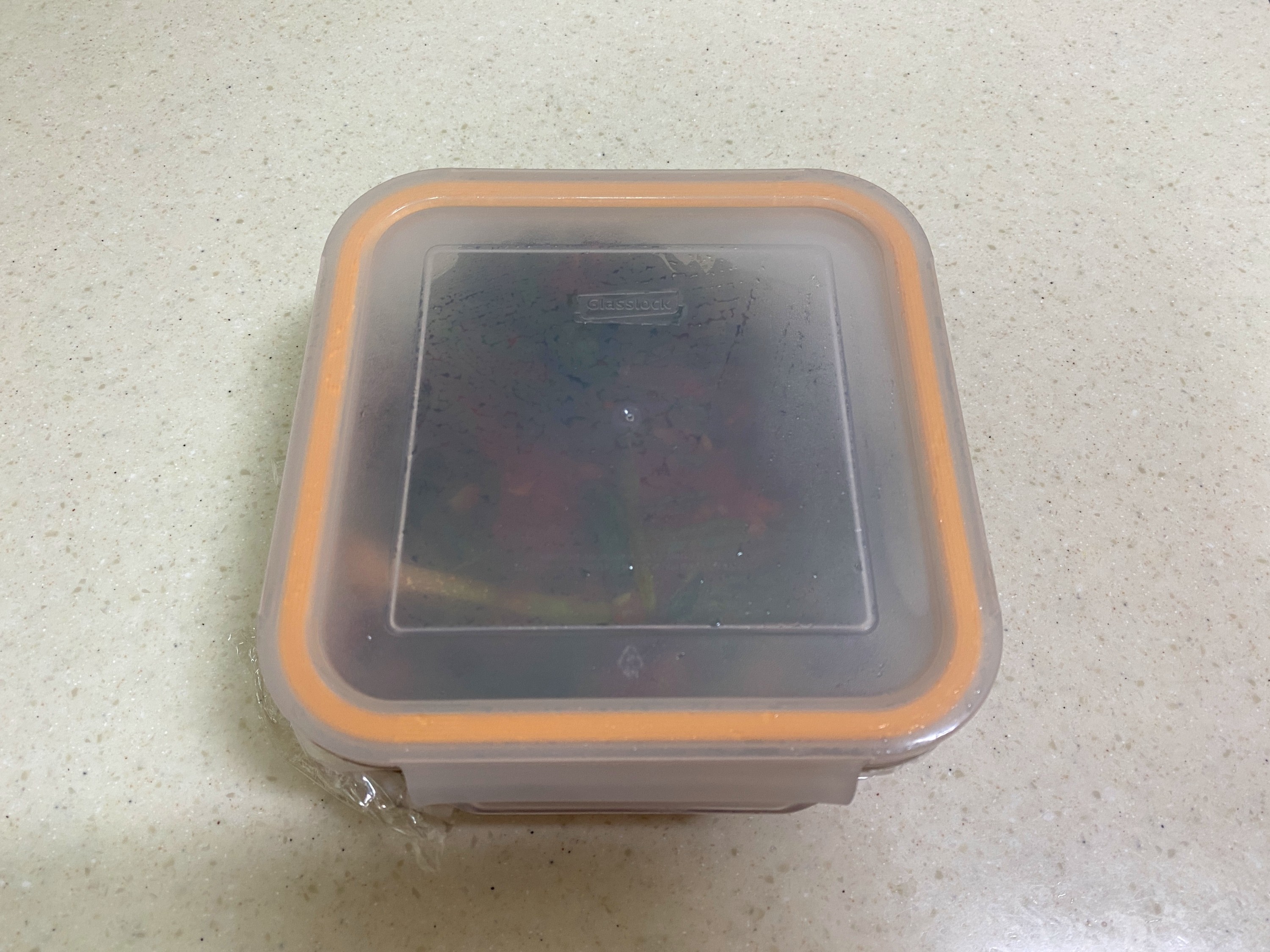 양은 글라스락 주황색 큰 통에 가득 담긴다.