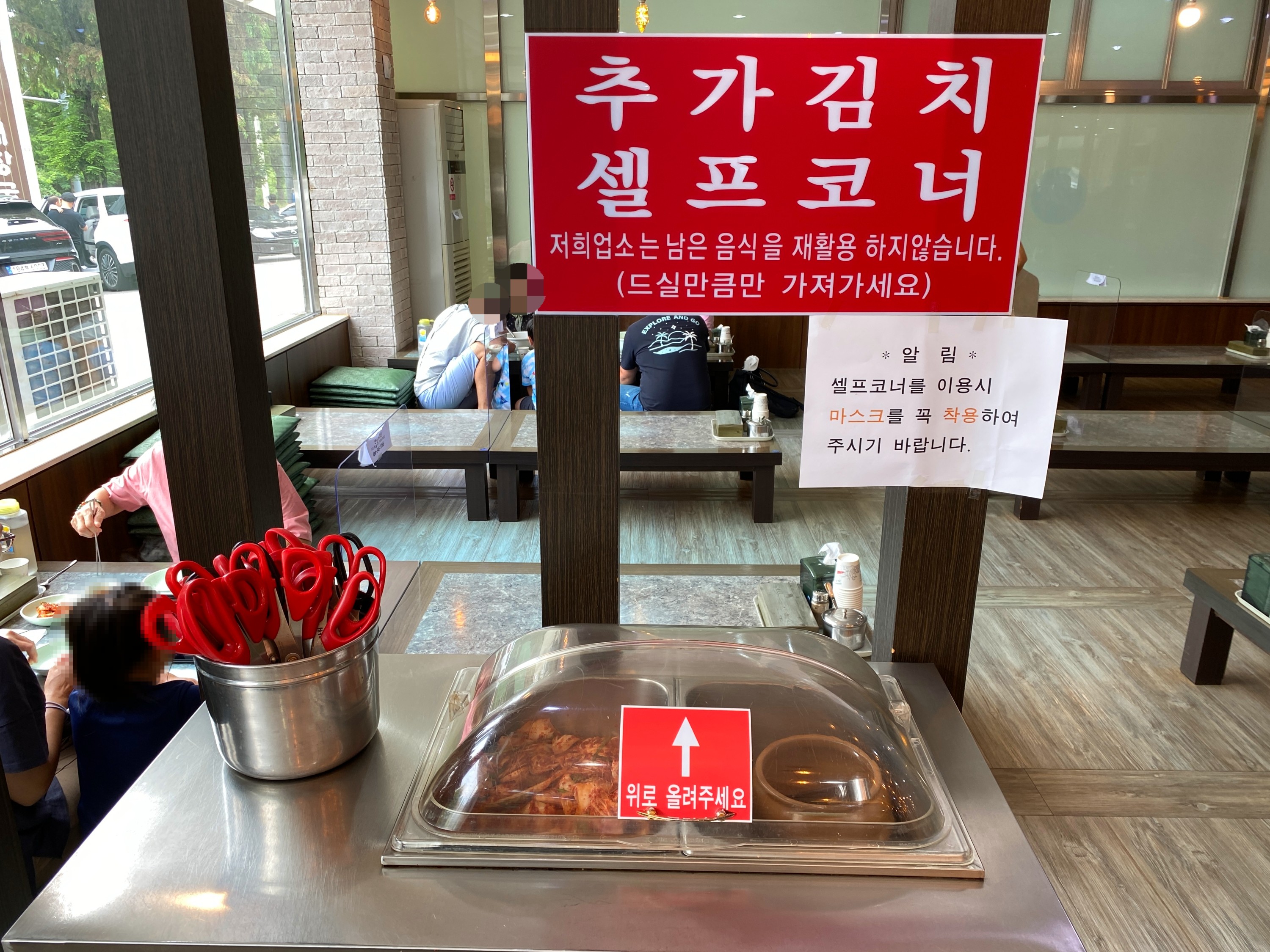 추가 김치는 셀프코너에서 가져다 먹을 수 있고