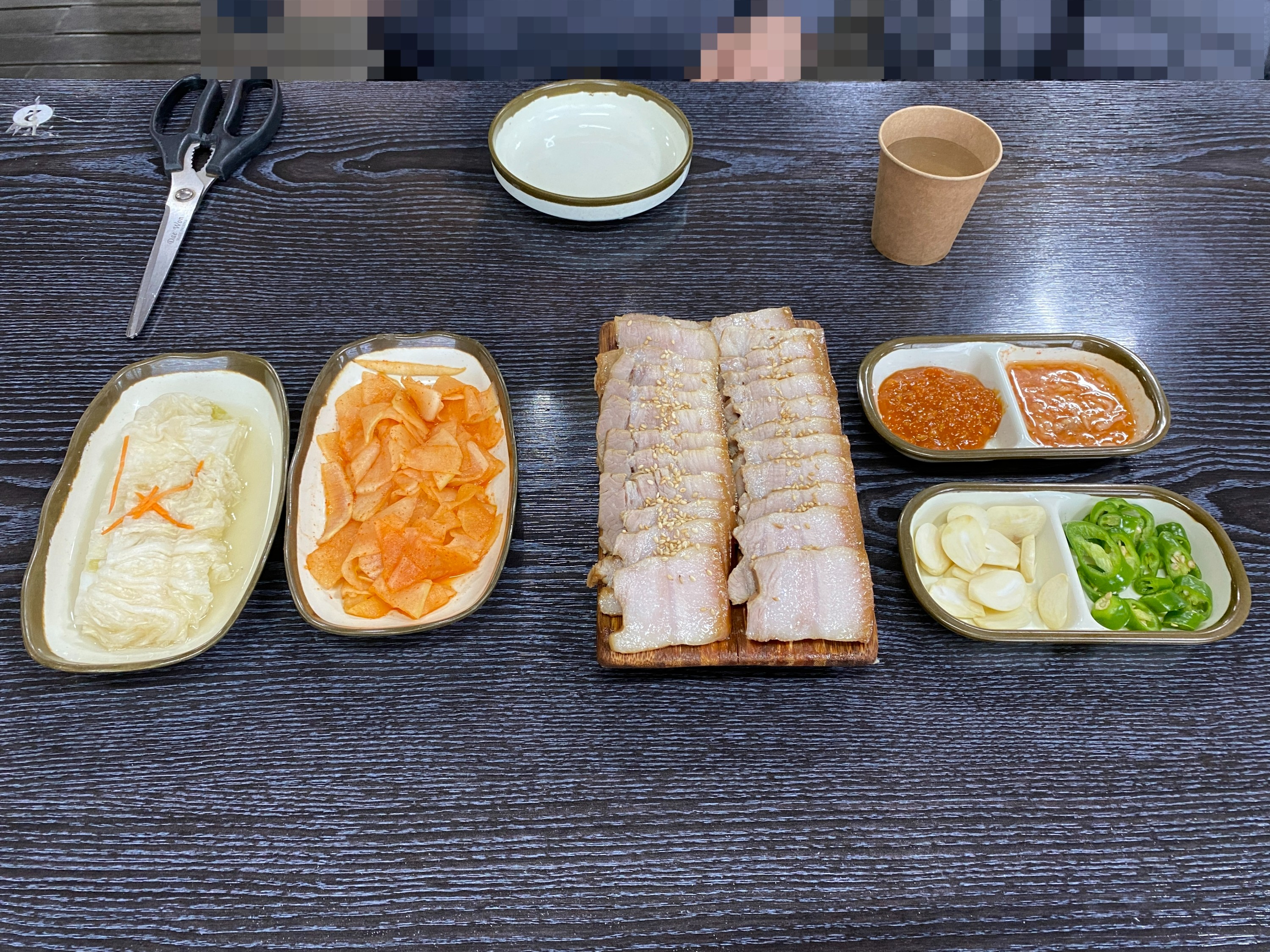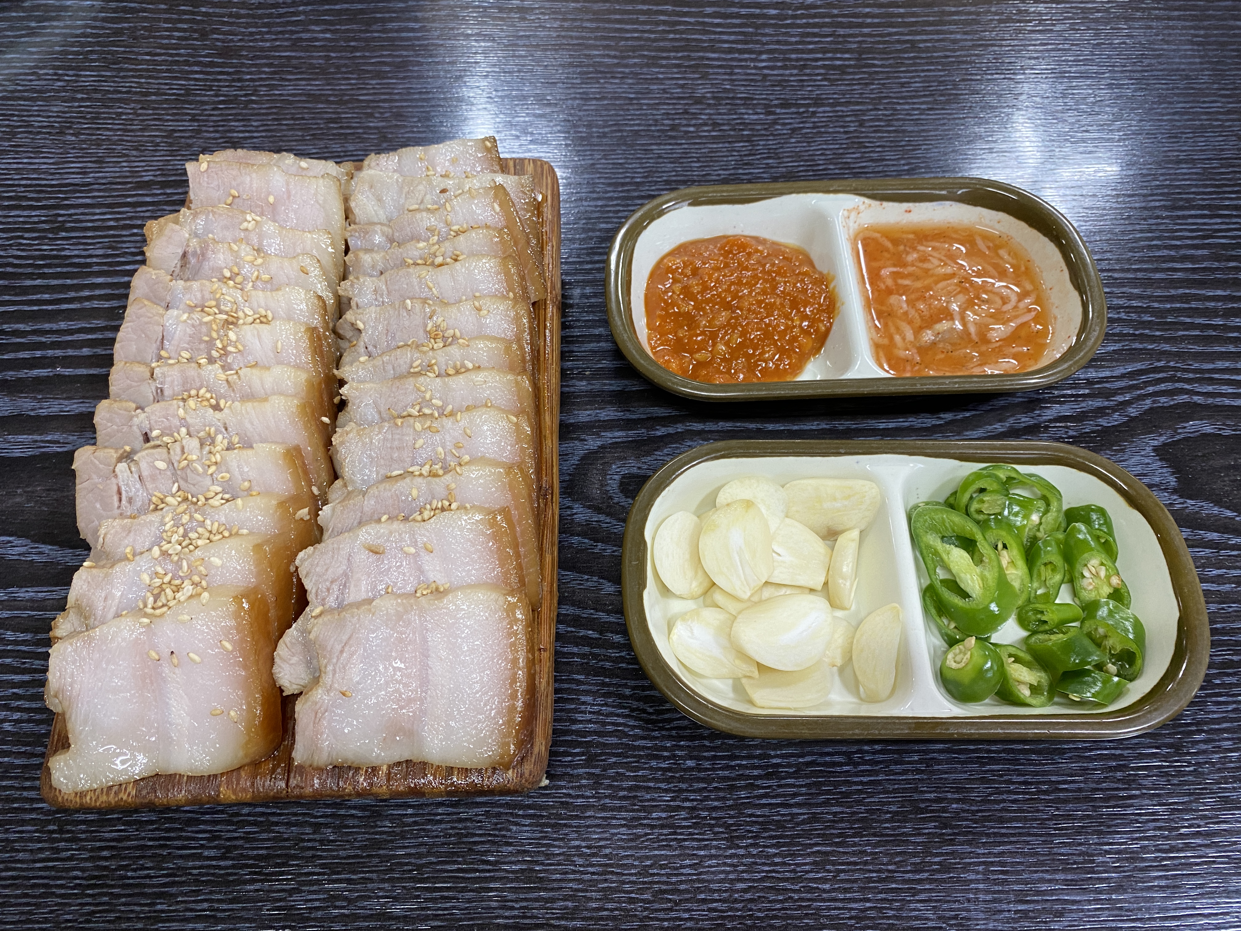 수육은 새우젓과 마늘, 고추가 함께 나온다.
