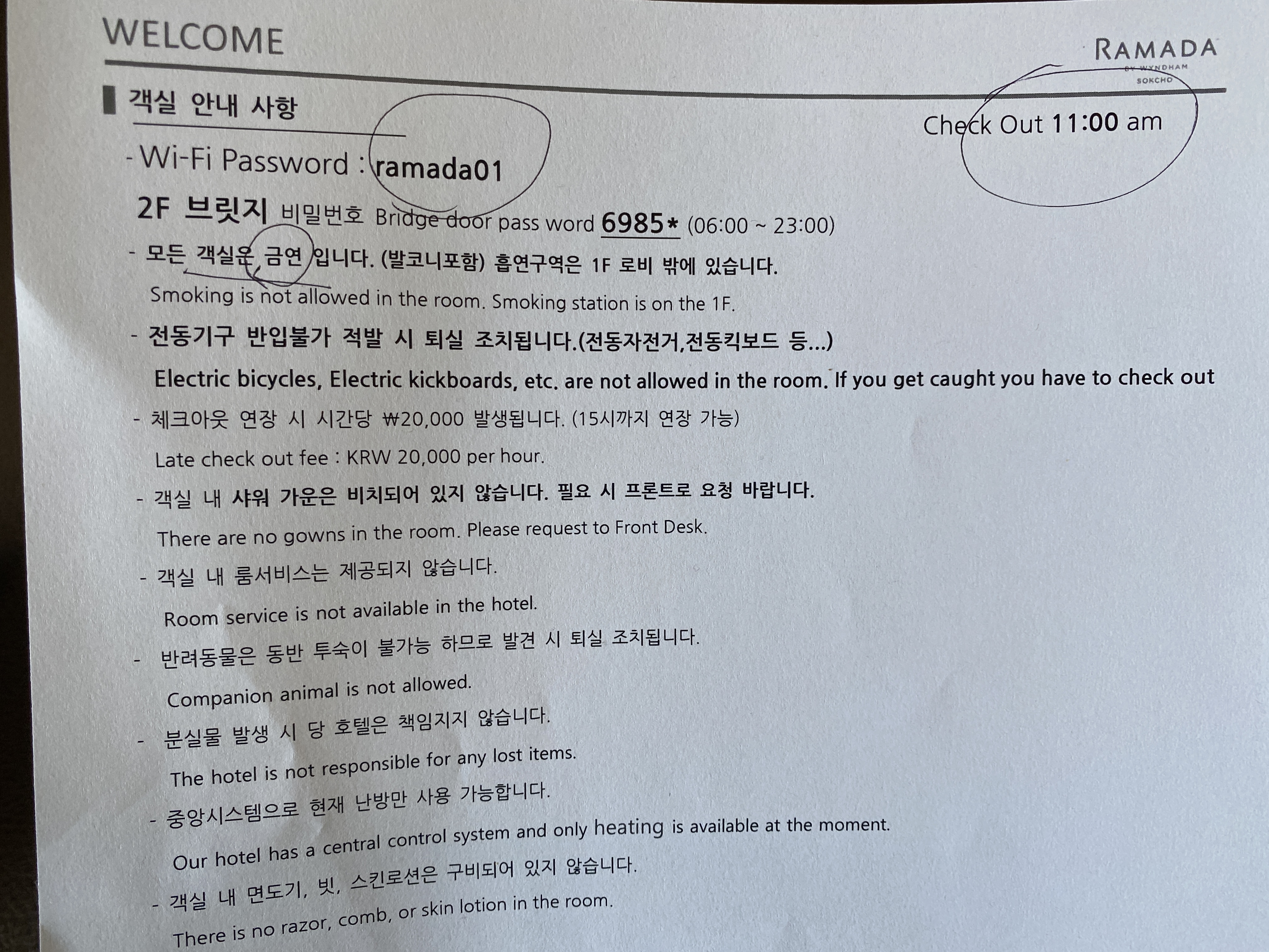 체크인 하면서 받은 종이이다.