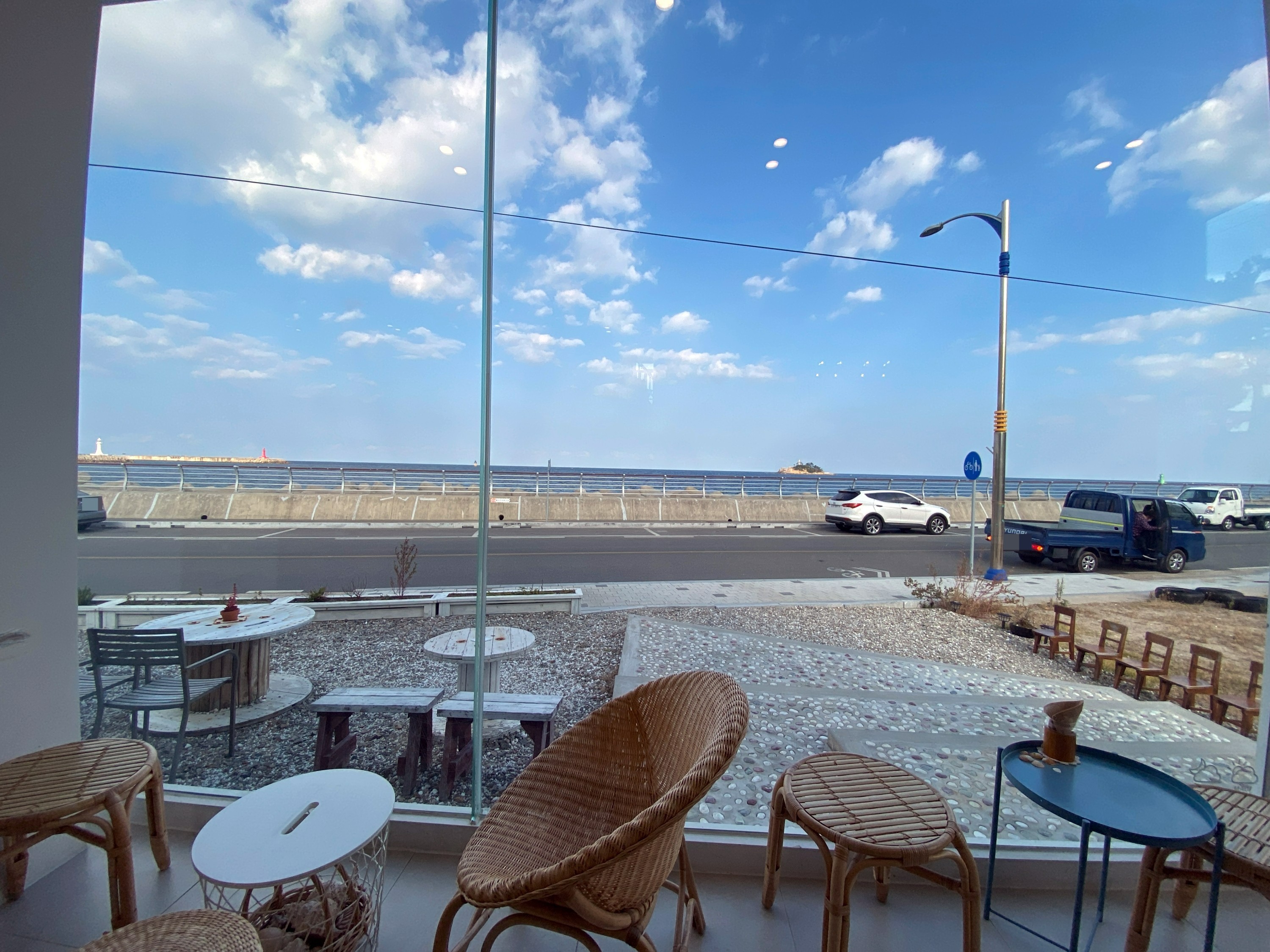 카페에서 도로 하나만 건너면 바다가 있을 정도로