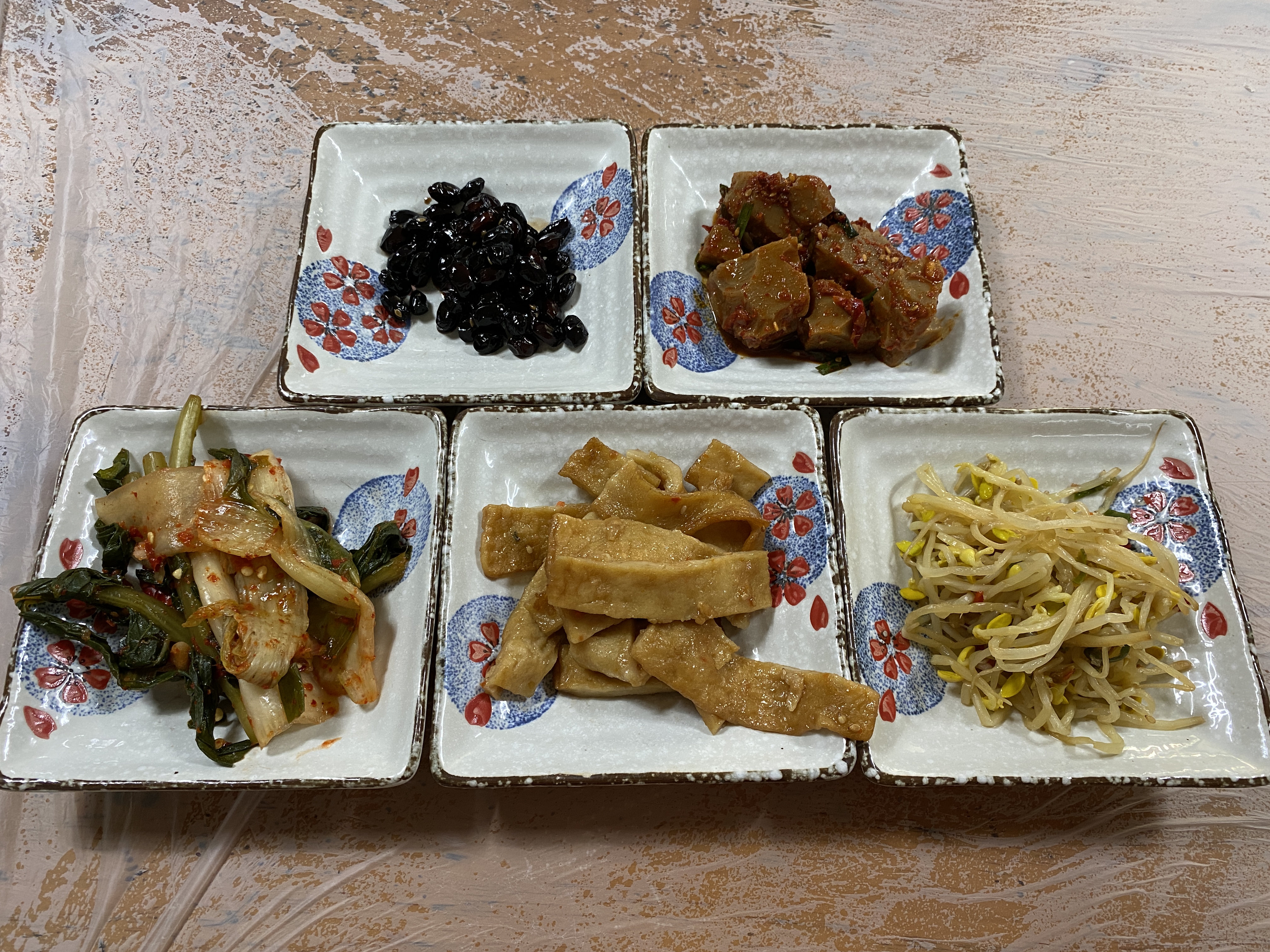 기본찬으로 콩자반, 도토리묵무침,
