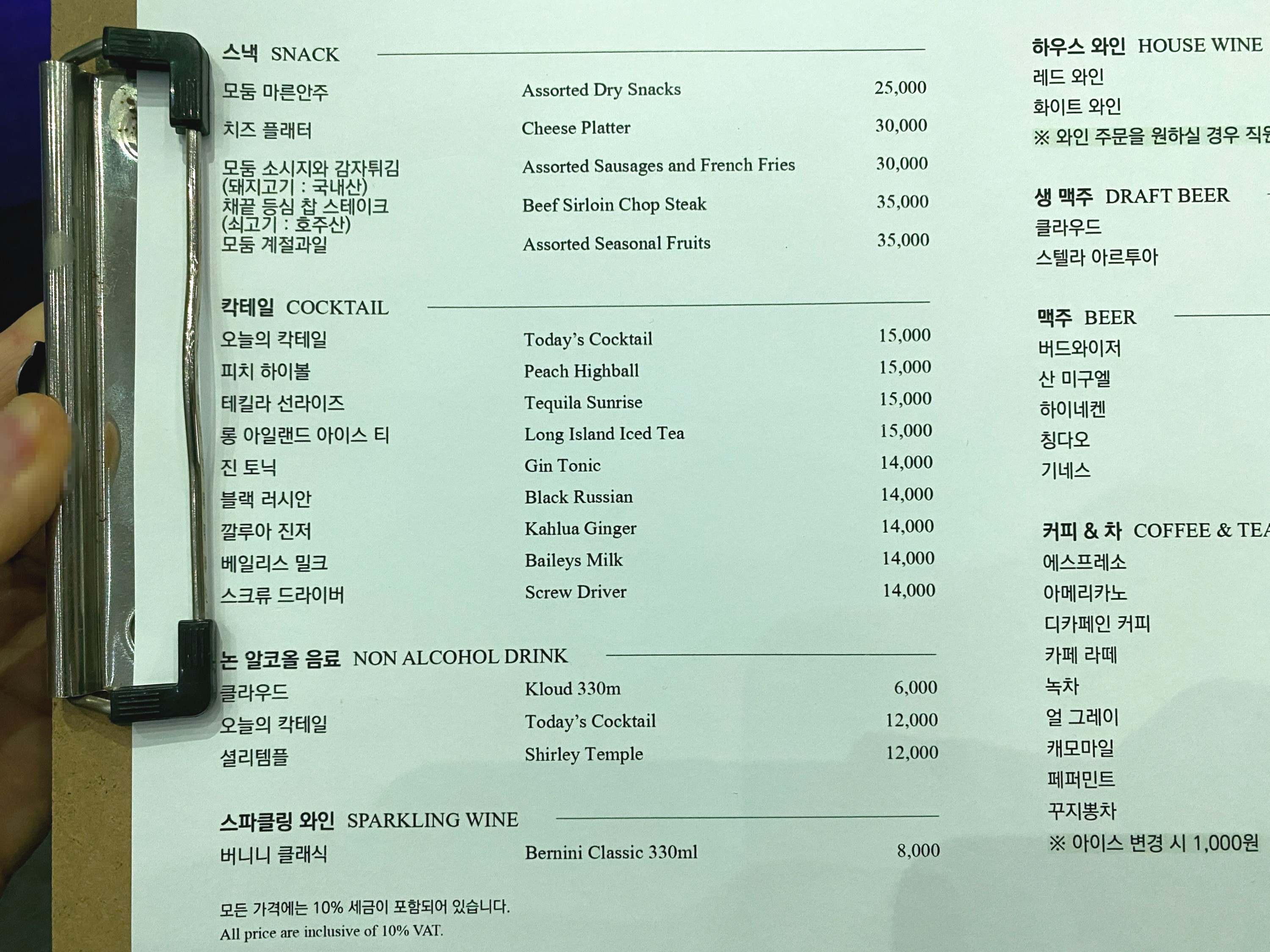(참고로, 칵테일은 실내에서 마실 때는