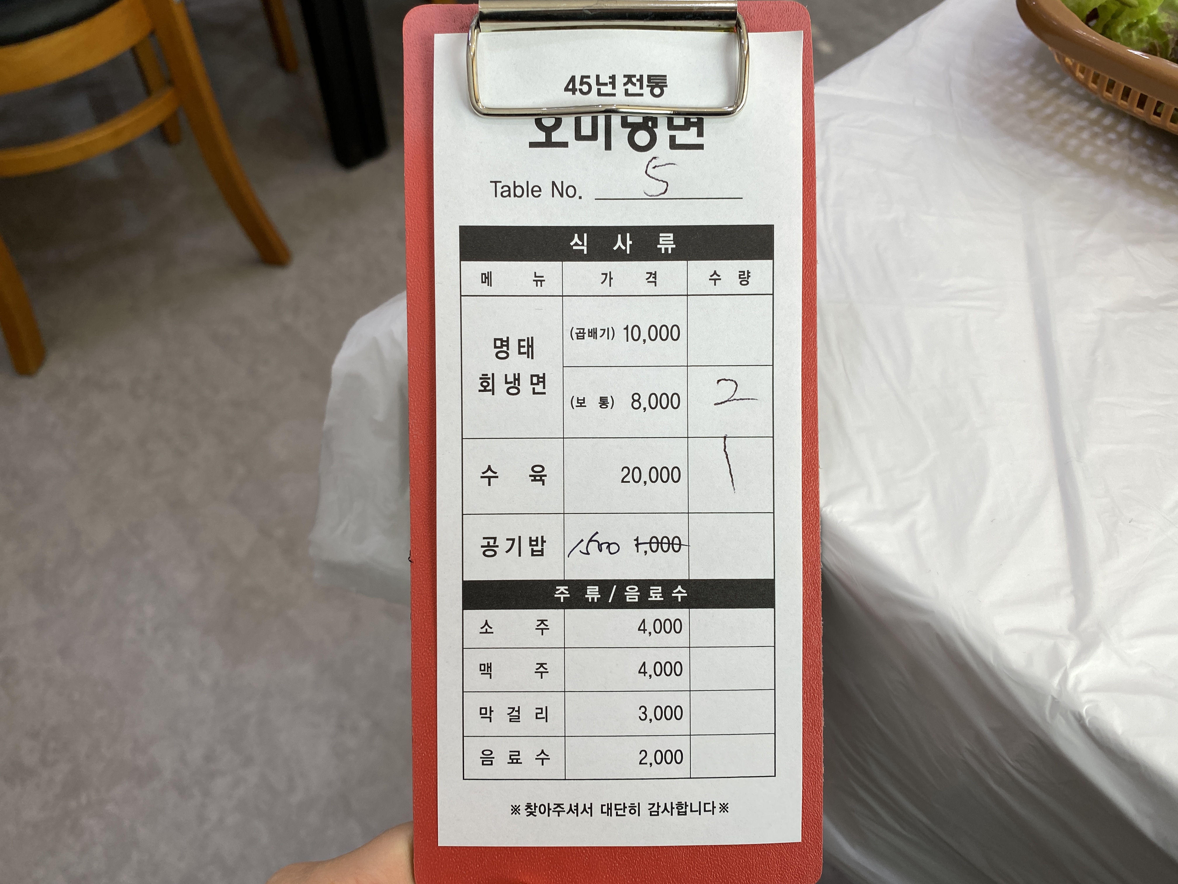 계산서에는 45년전통이라고 적혀있음)
