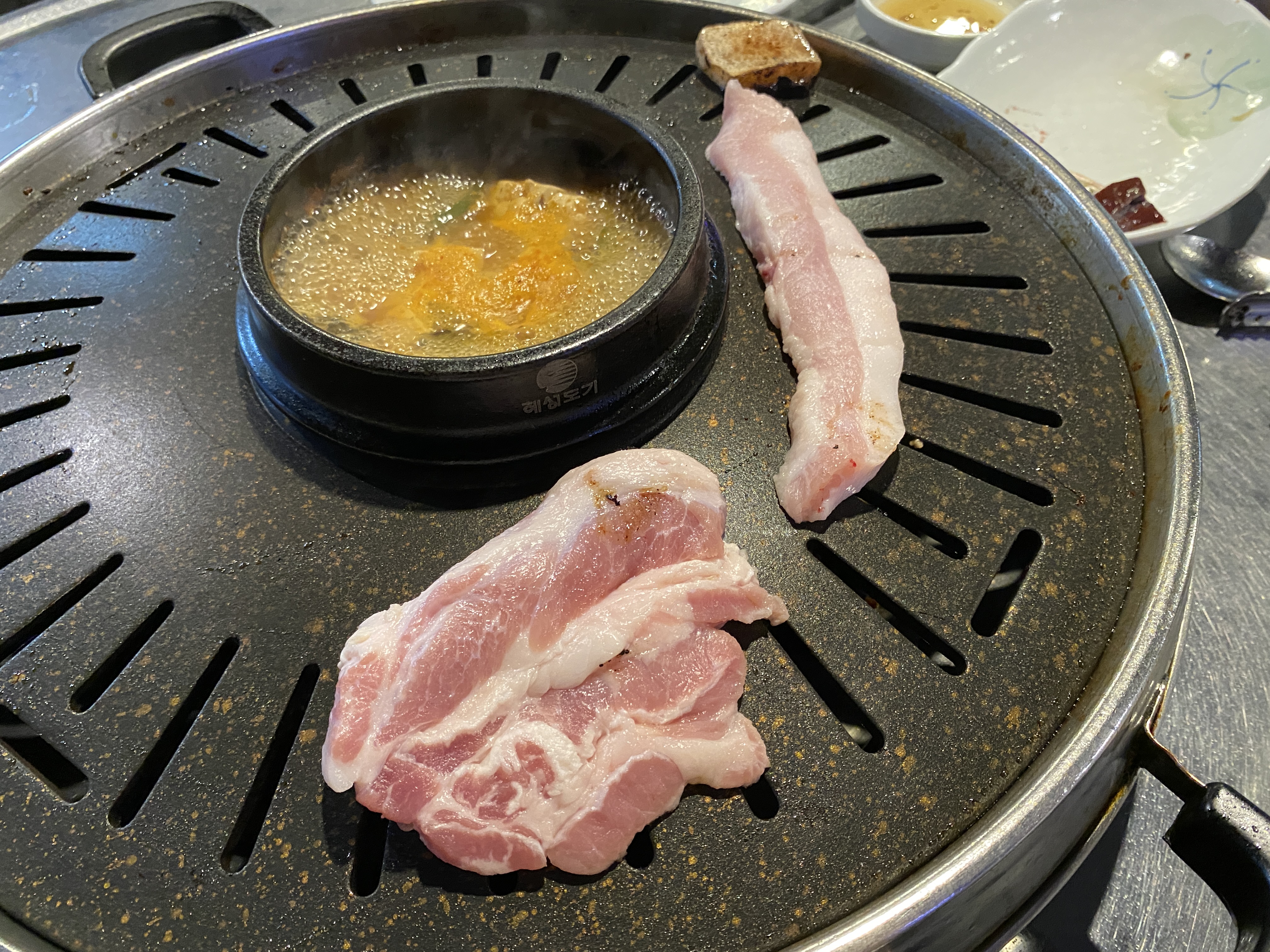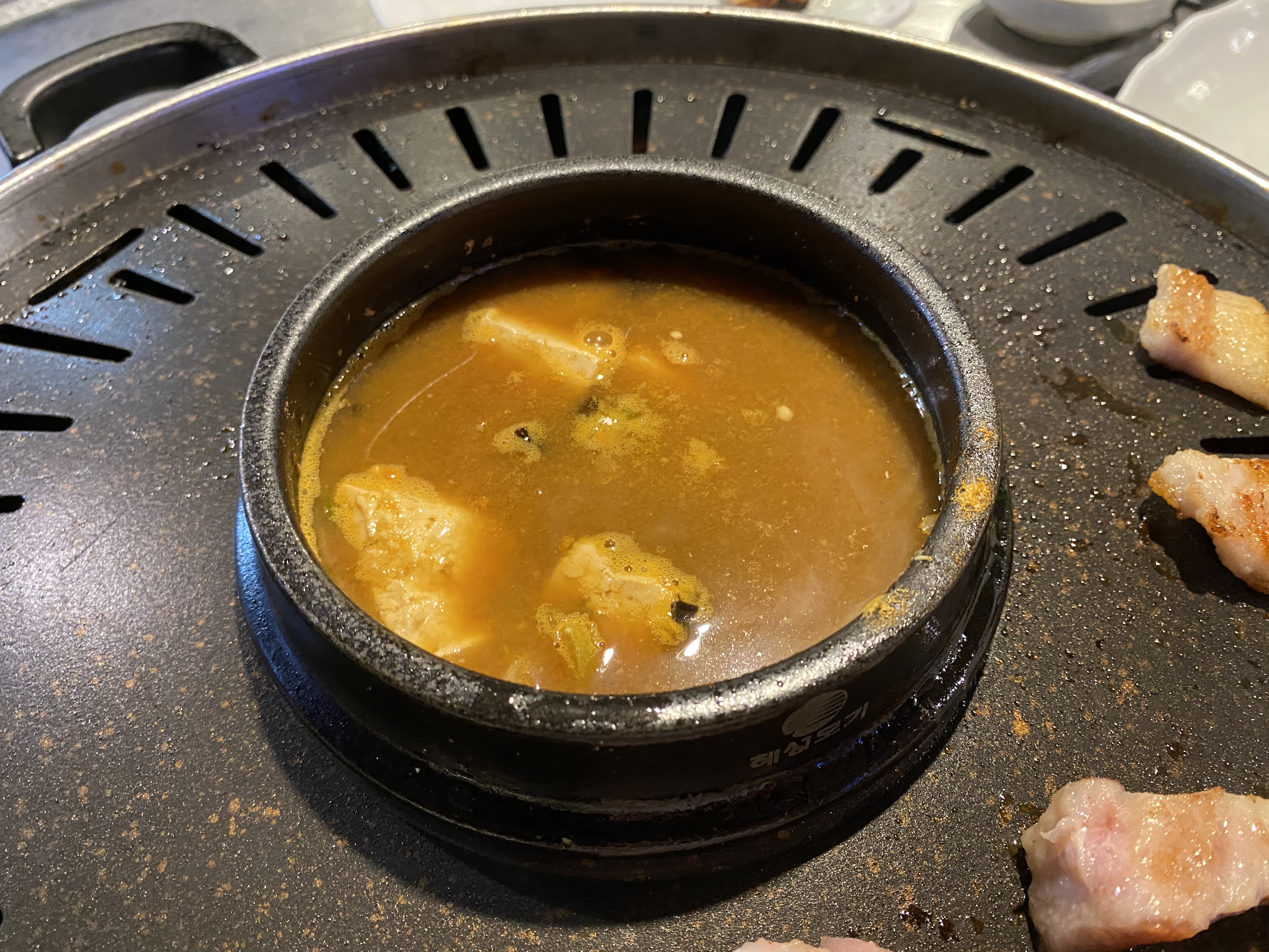 김치의 새콤함이 돼지기름에 중화되서 맛있었다.