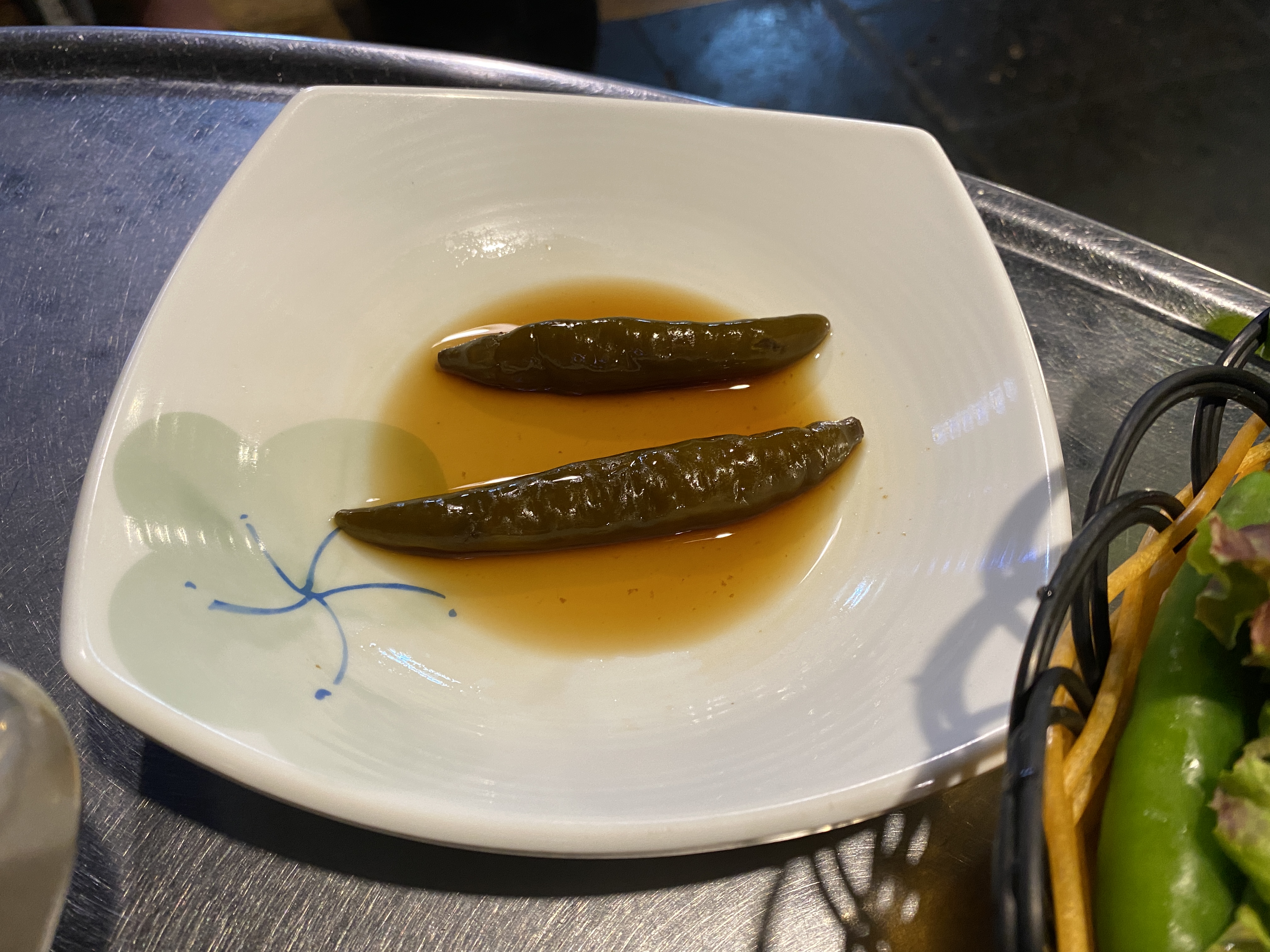 밑반찬으로는 고추장아찌, 무채, 쌈채소가 나왔다.