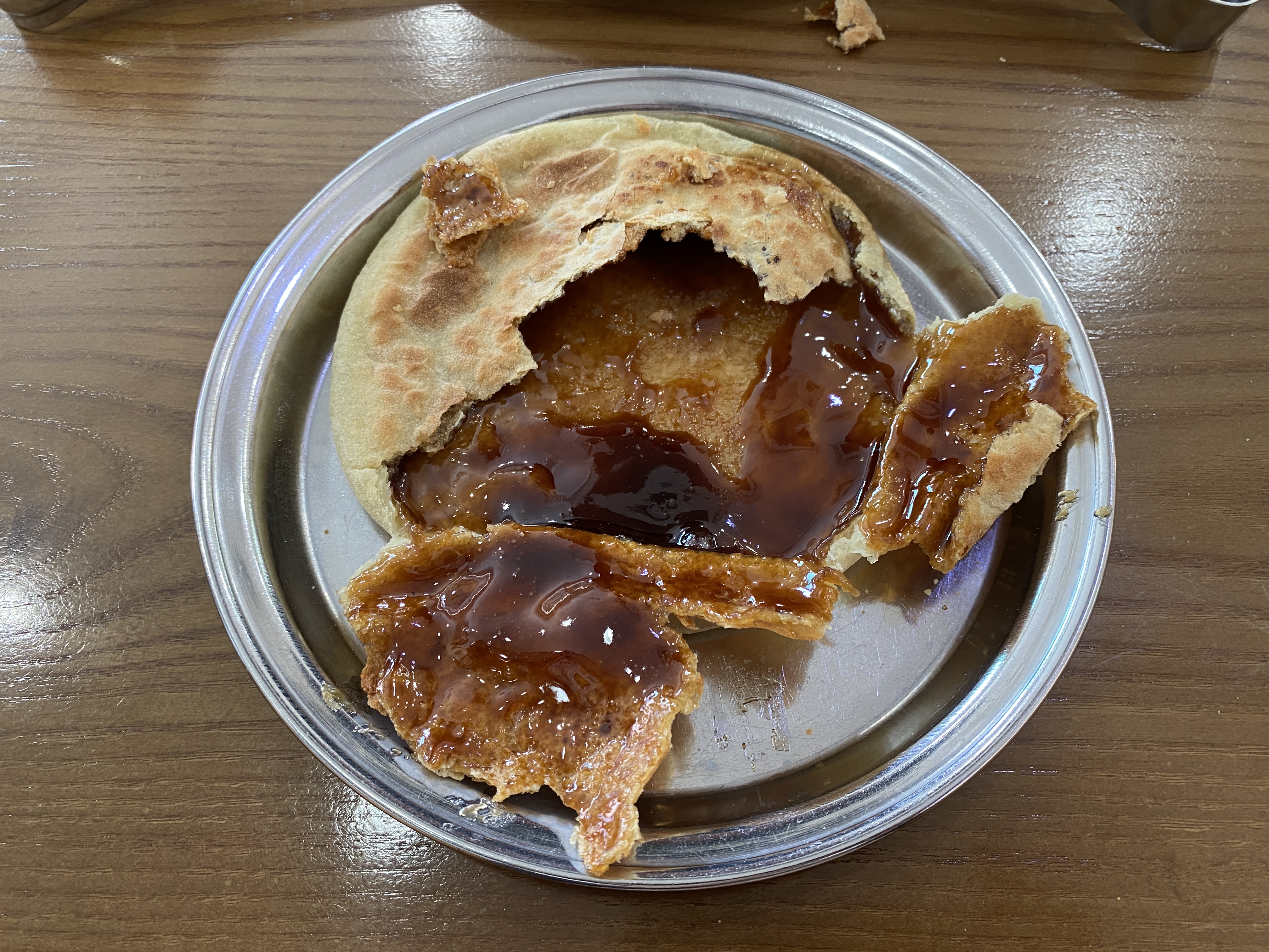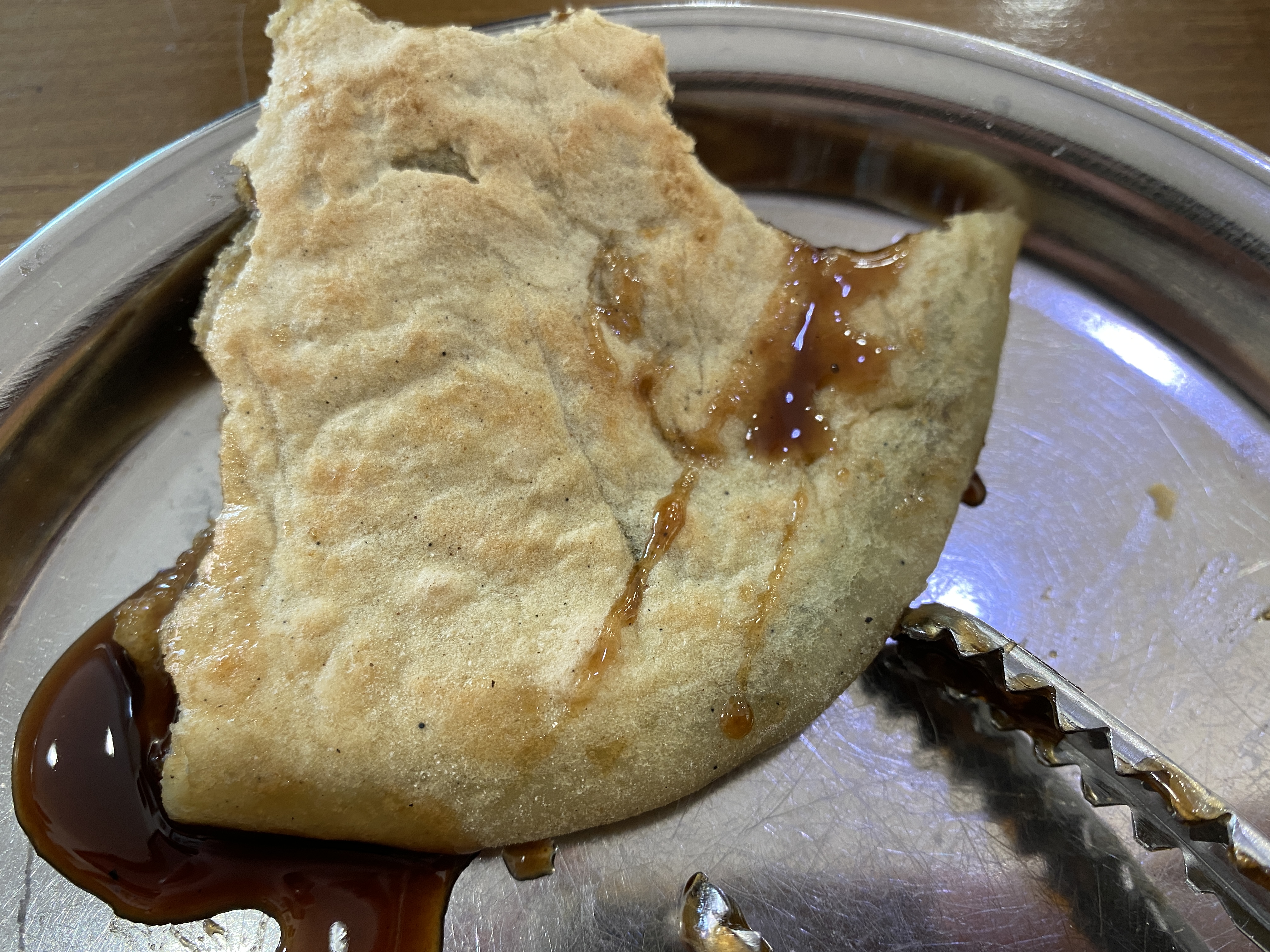 호떡의 가운데를 찢어서 시럽에 찍어먹어본다.