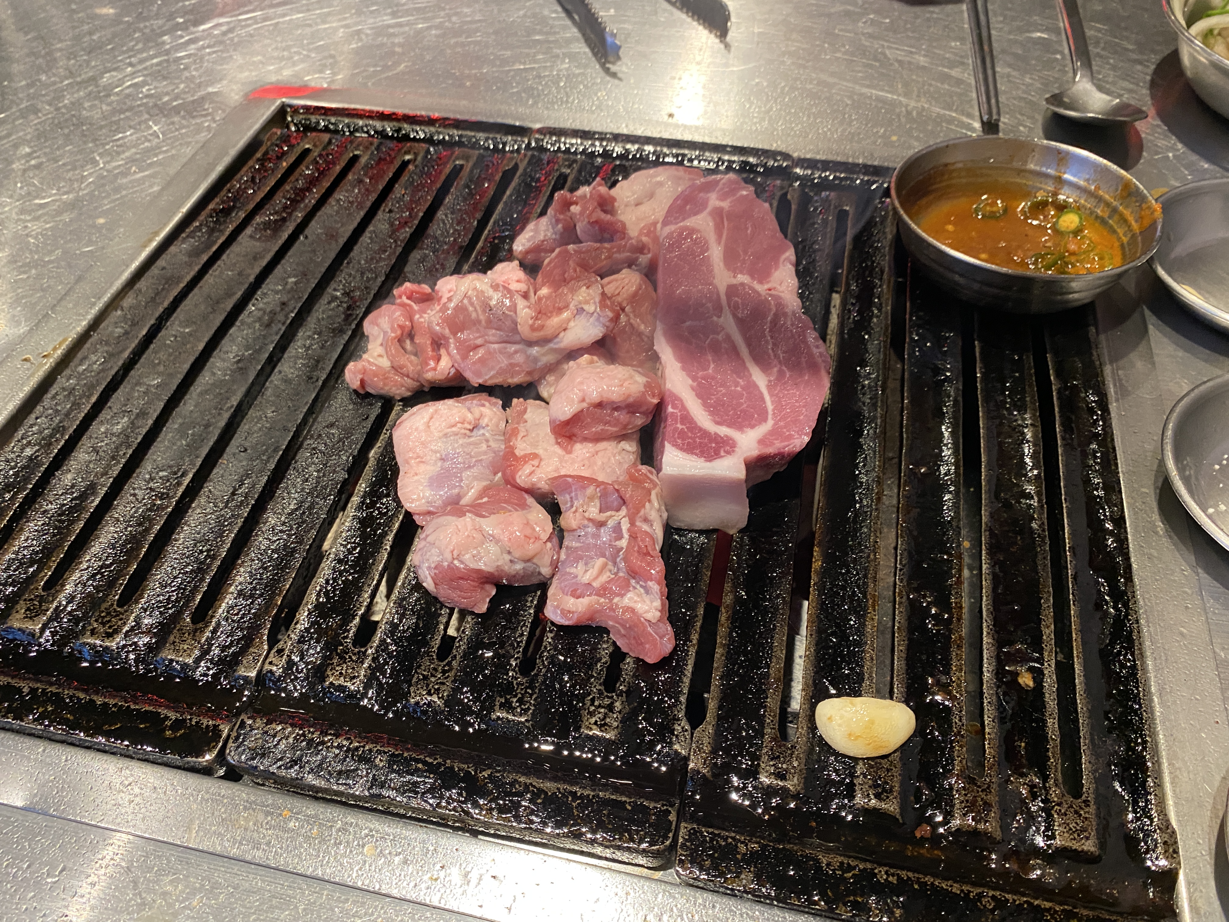 여기 불판이 탄게 잘 눌러붙어서 좀 아쉬웠다.