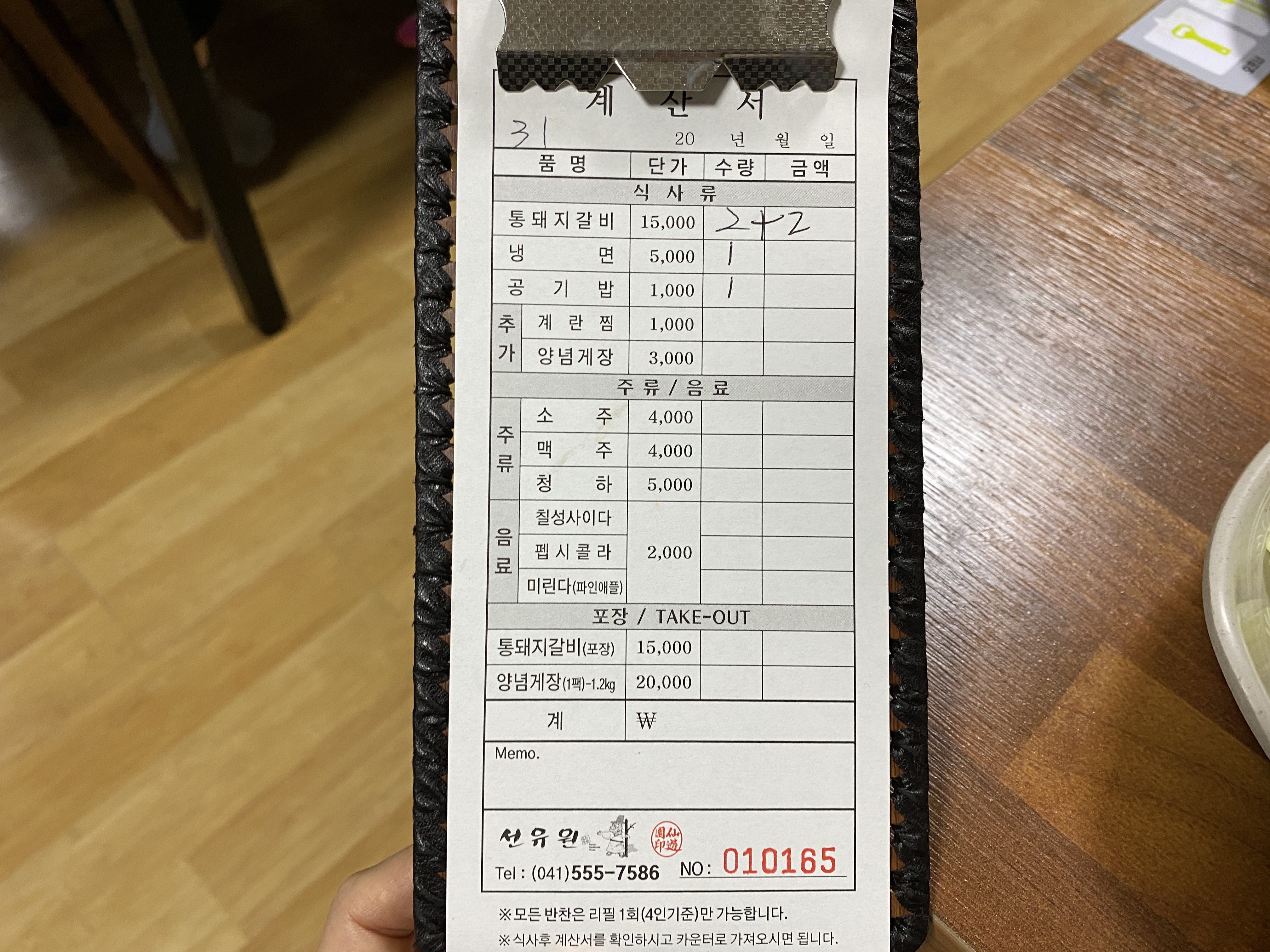 우리가 먹은 계산서이다.