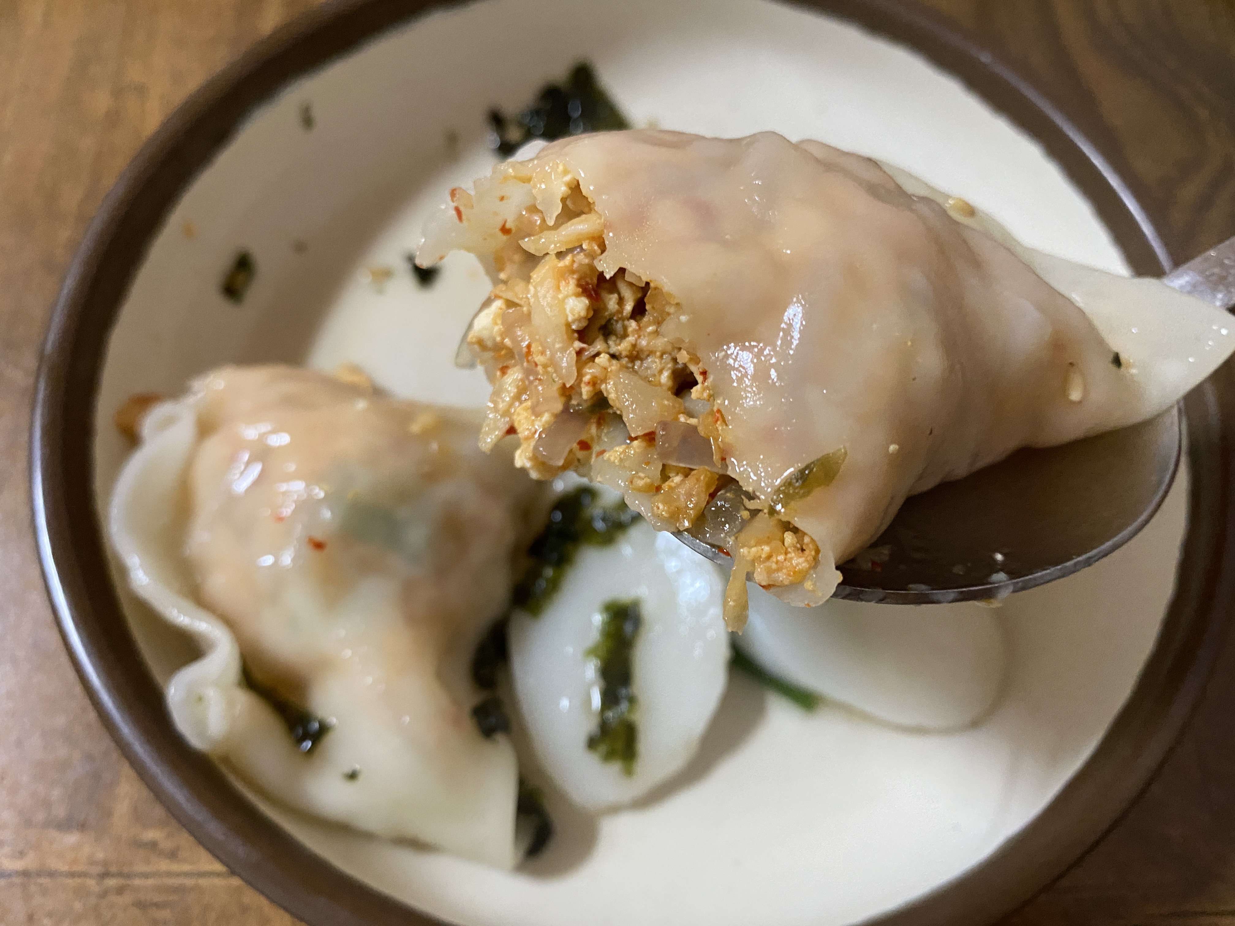 만두소에 두부도 많이 들어간 것 같다.