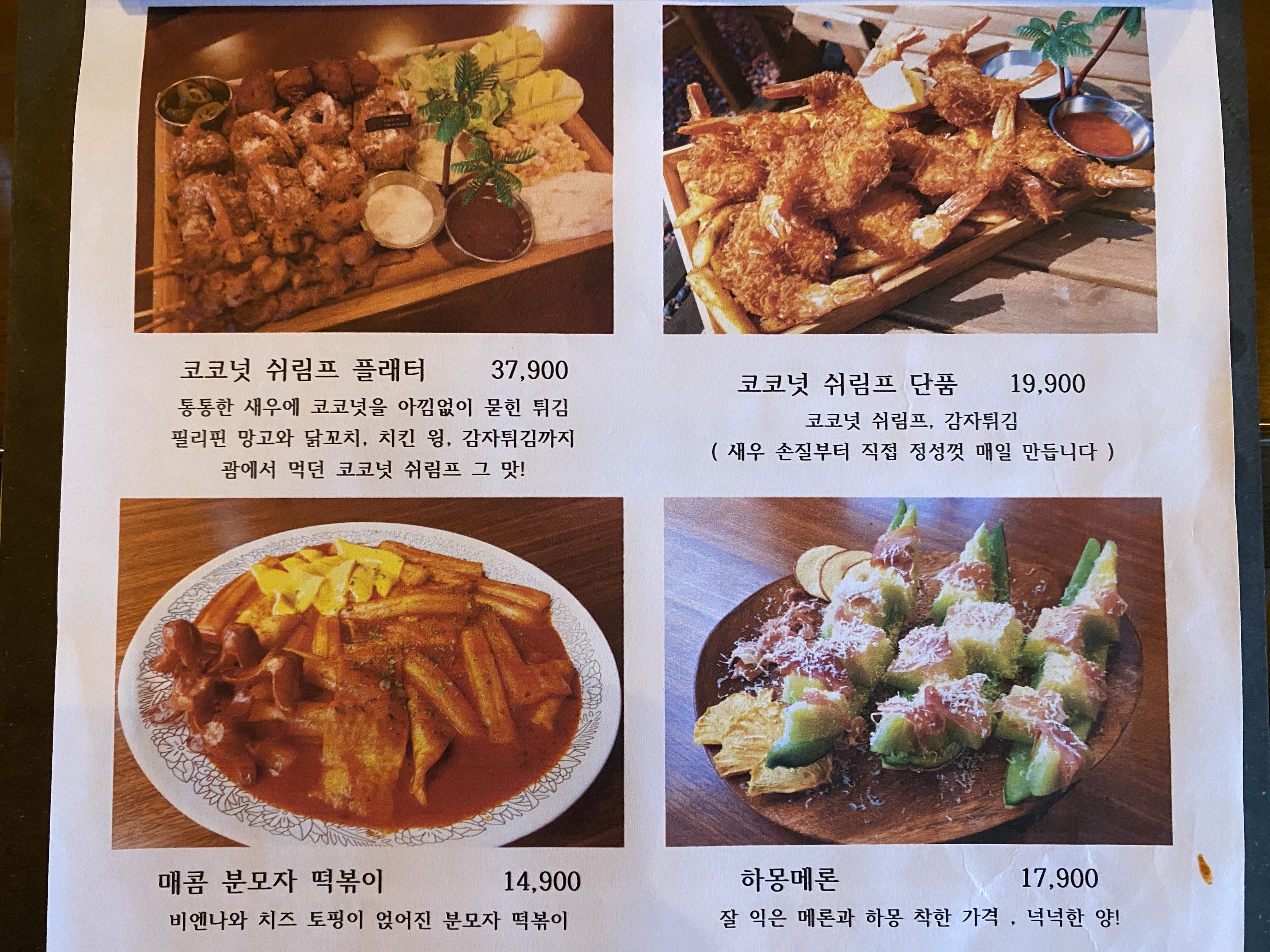 코코넛 쉬림프랑 닭꼬치는 맛이 좀 아쉬웠는데