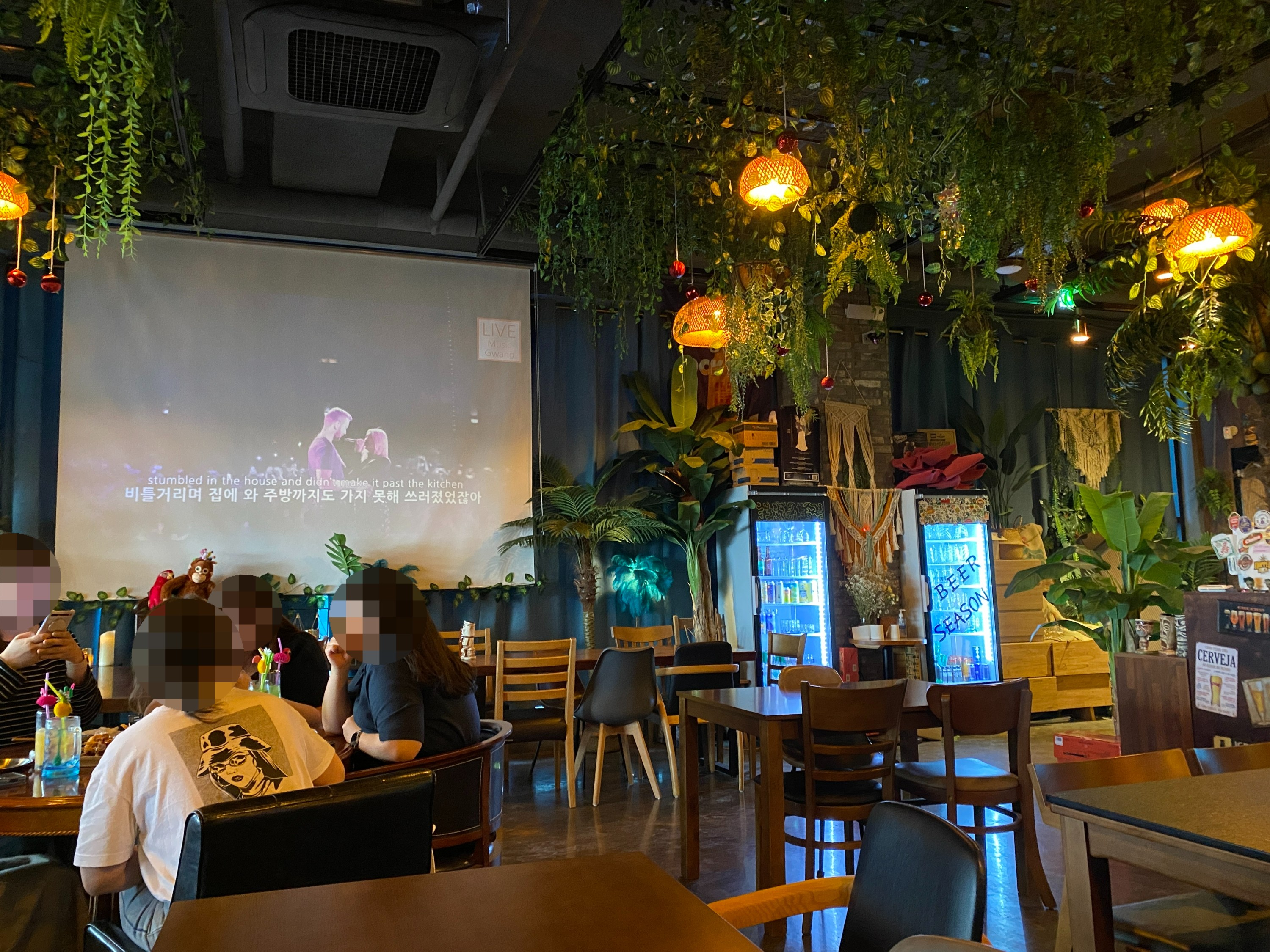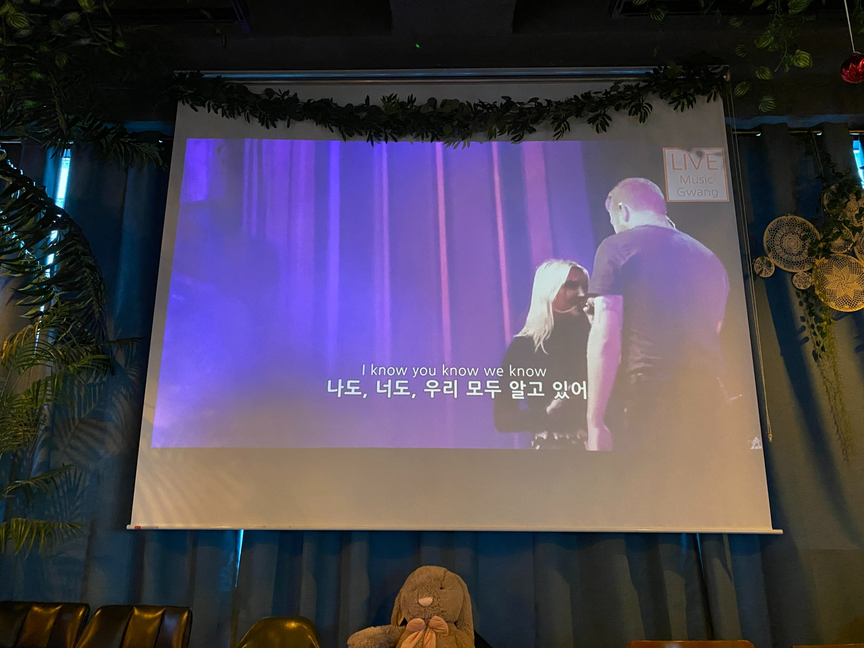 대형스크린으로 음악영상을 틀어놓는데